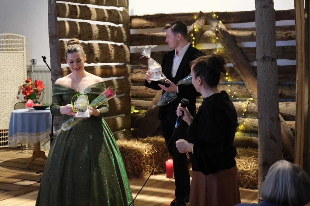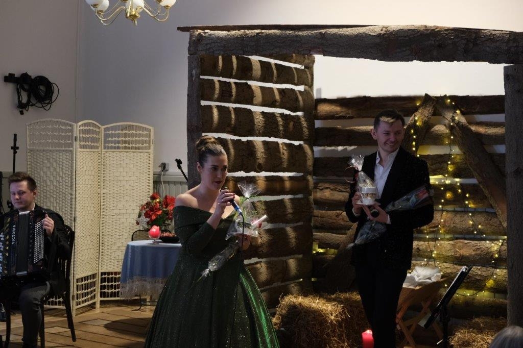 Jak na styczeń przystało artyści zaprezentowali program pod tytułem „Uskrzydlające kolędowanie z Duo Performance”, na który składały się kolędy i pastorałki i te tradycyjne, takie jak „Cicha Noc”, „Gdy Śliczna Panna”, czy „Bóg się Rodzi”, jak i ze świata choćby hiszpańska „Con Mi Burrito Sabanero” czy amerykańska „Felitz Navidad”. Przy wielu utworach, licznie zgromadzona publiczność śpiewem wspierała wykonania artystów, a nawet, jak to już stało się tradycją do występujących na scenie dołączył „Makino” czyli Aleksander Łodzia - Kobyliński. Pomiędzy poszczególnymi pieśniami, nie zabrakło też brawurowych wykonań melodii na akordeonie Pana Mateusza.