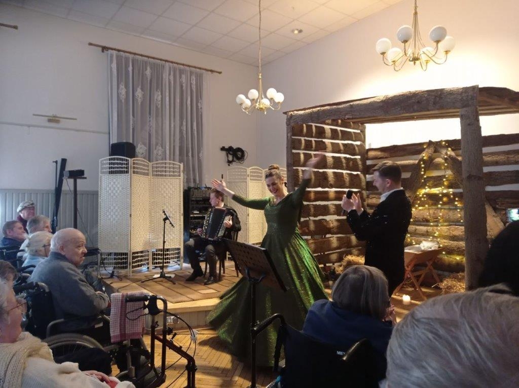 17 stycznia 2024 roku odwiedzili naszych seniorów nasi wypróbowani przyjaciele artyści: Pani Monika Biederman-Pers oraz panowie Piotr Karzełek i Mateusz Dudek.