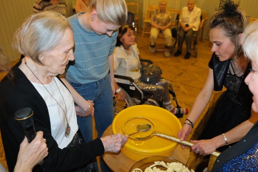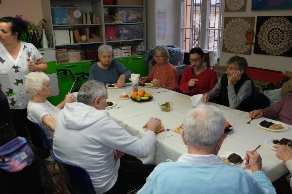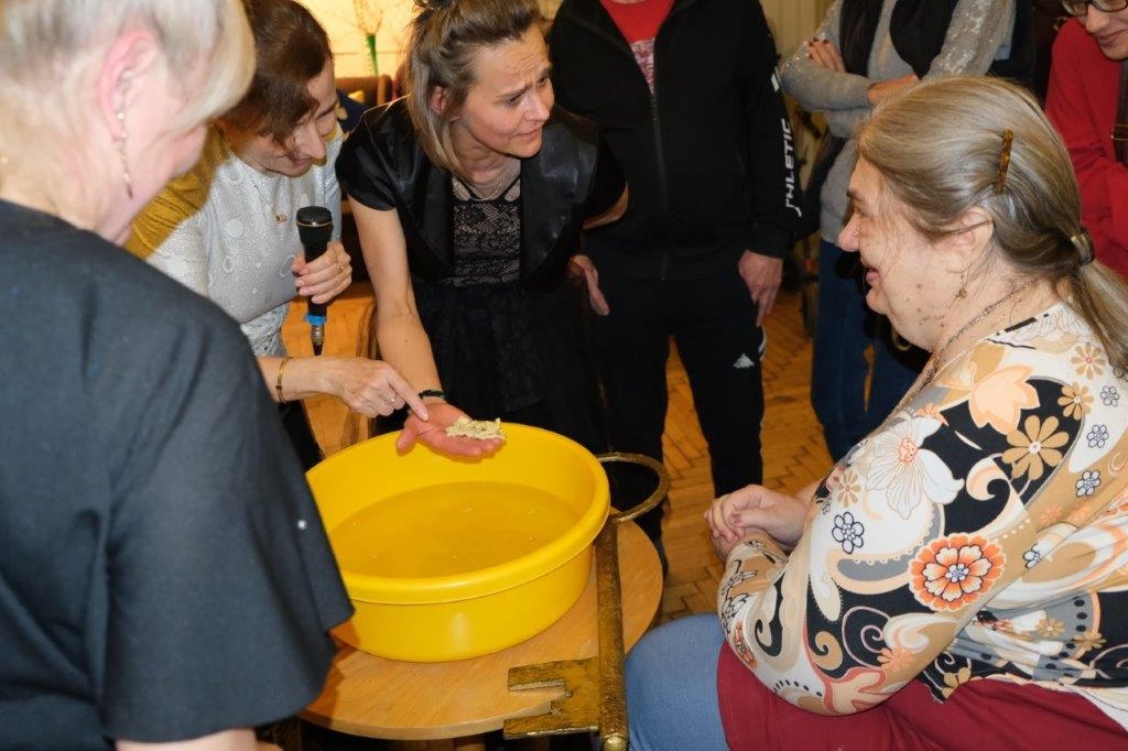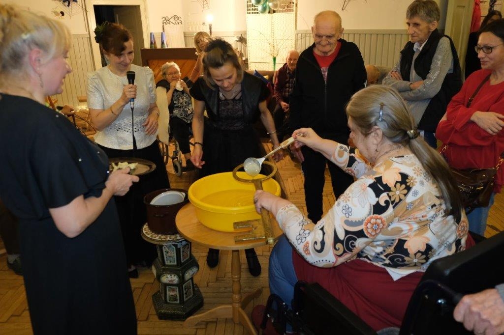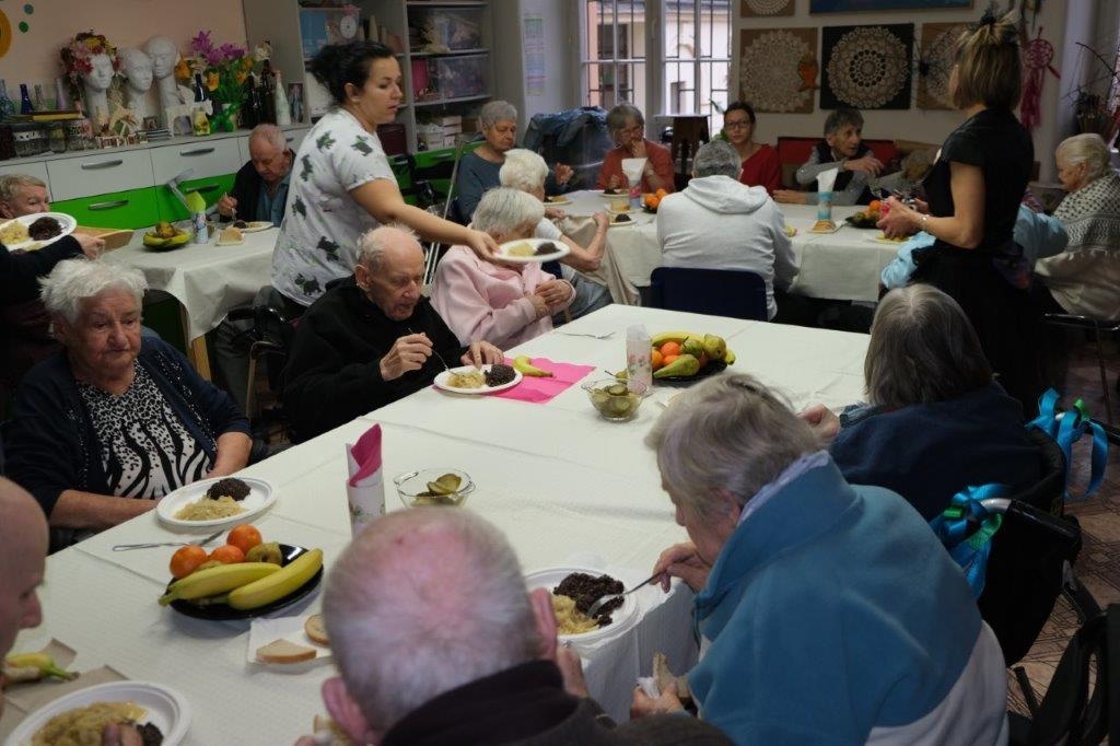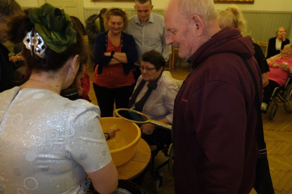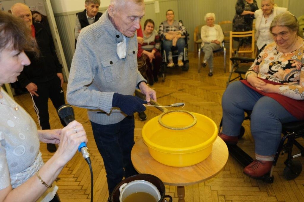Po odprawieniu przez księdza kapelana tradycyjnej w tym dniu mszy świętej, rozpoczęło się popołudniowe andrzejkowe ucztowanie. I to na kilka sposób. Najpierw dzięki naszej nieocenionej kuchni, która na przekór trudnościom związanym z prowadzaną modernizacją zaserwowała naszym seniorom wspaniały poczęstunek w postaci doskonałej kaszanki z kapustą, domowego sernika i owocami.