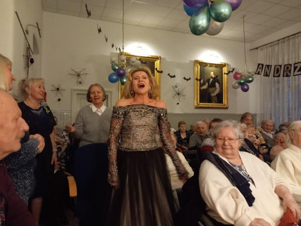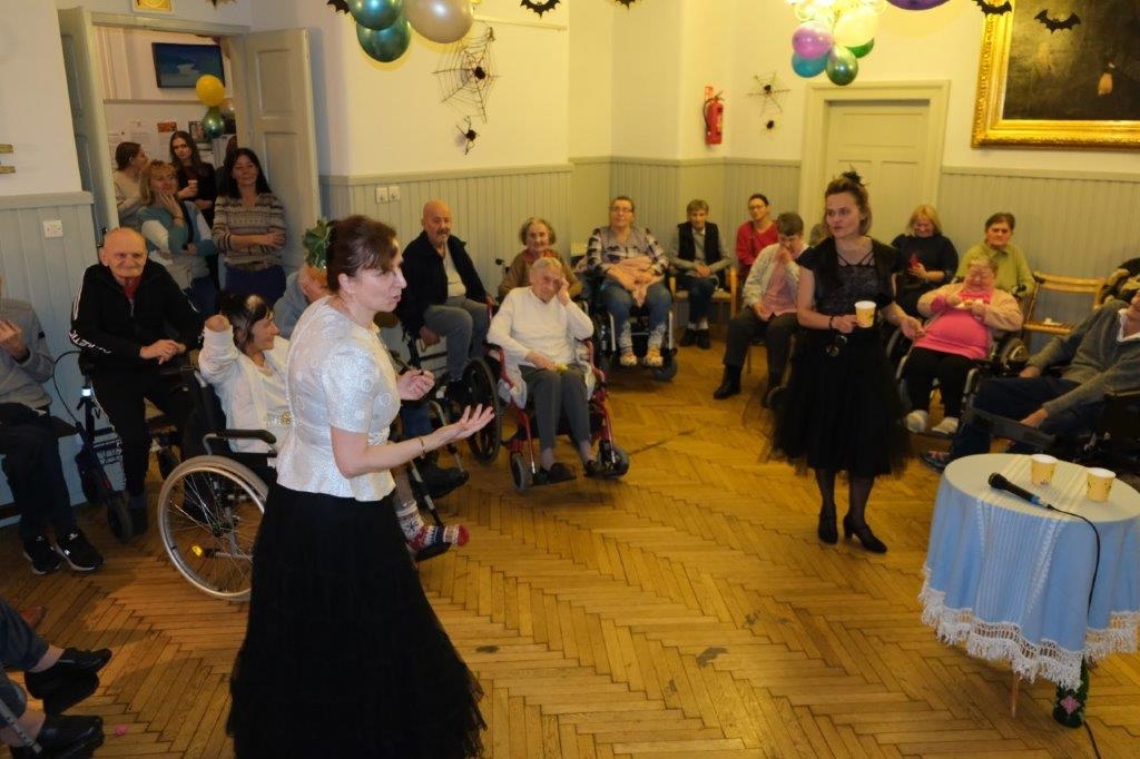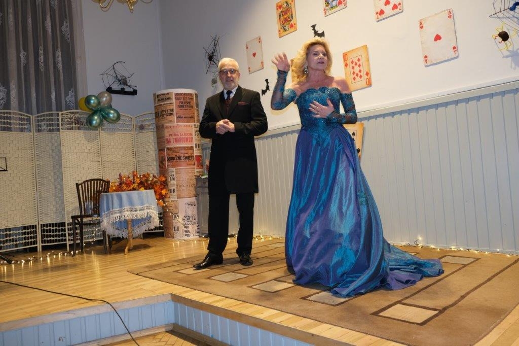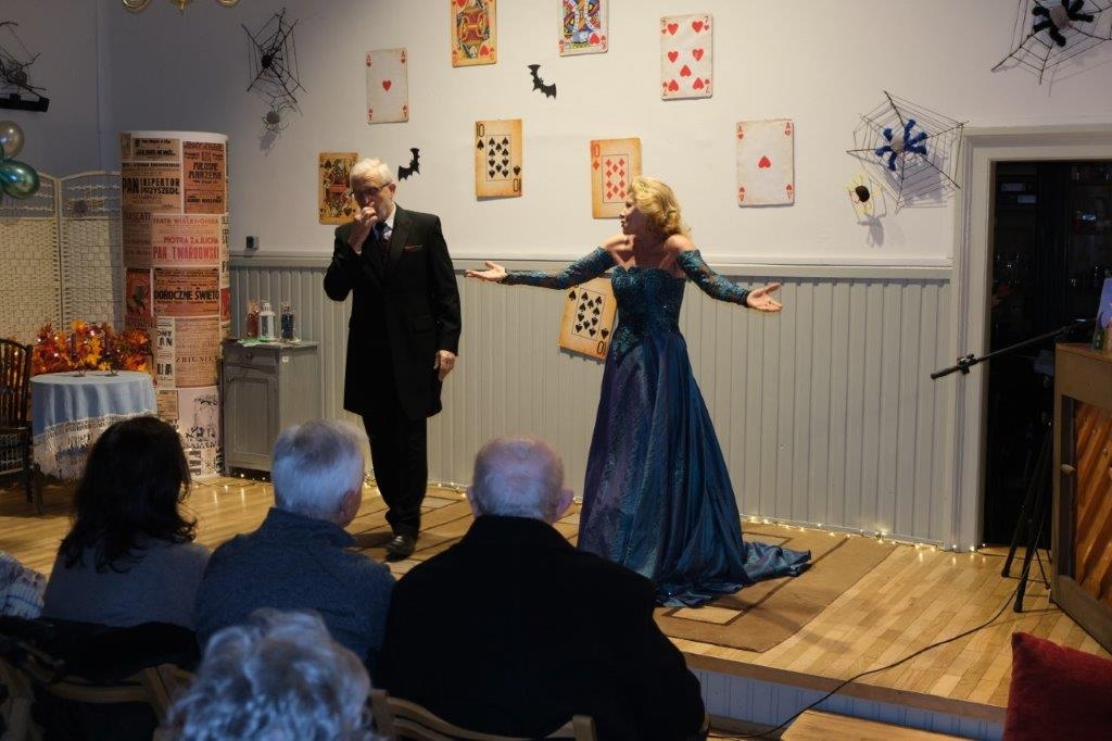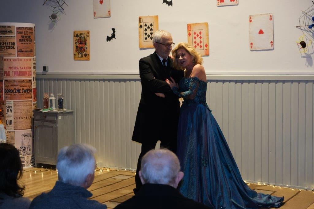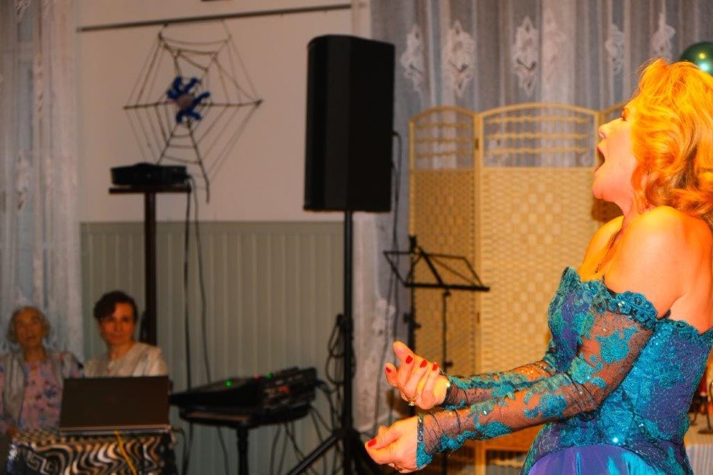 Po części kulinarnej prawdziwą ucztę dla melomanów zapewnili nam nasi wspaniali przyjaciele artyści operowi i operetkowi tj, Pani Bożena Zawiślak – Dolny oraz Pan Witold Wrona, którzy przy akompaniamencie i prowadzeniu koncertu przez Panią Renatę Żełobowską - Orzechowską zaserwowali nam wspaniały program artystyczny, na który składały się znane i mniej znane przedwojenne szlagiery. Występ naszych gości został zadedykowany, niedawno zmarłemu mieszkańcowi naszego Domu, mecenasowi i przyjacielowi artystów a także naszej placówki Panu Zenonowi Hajdudze.