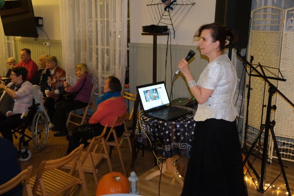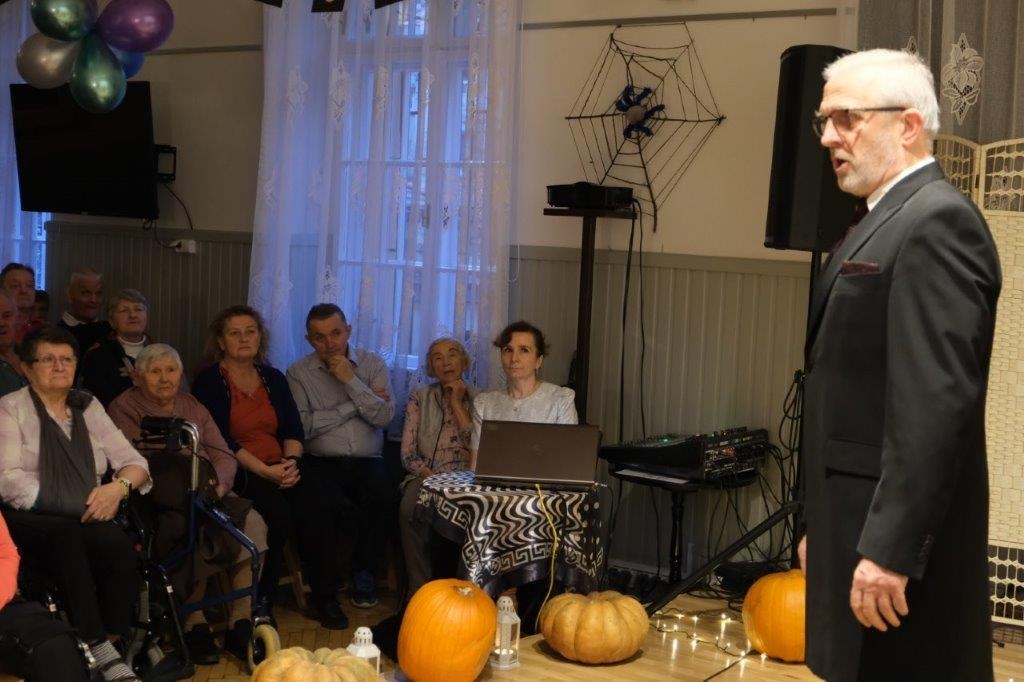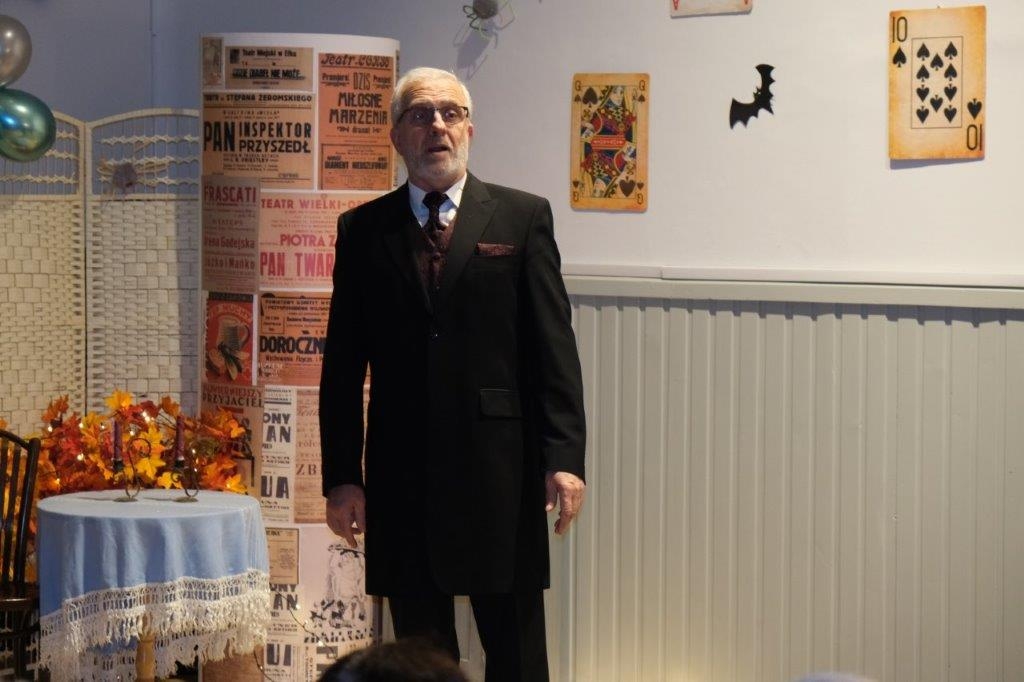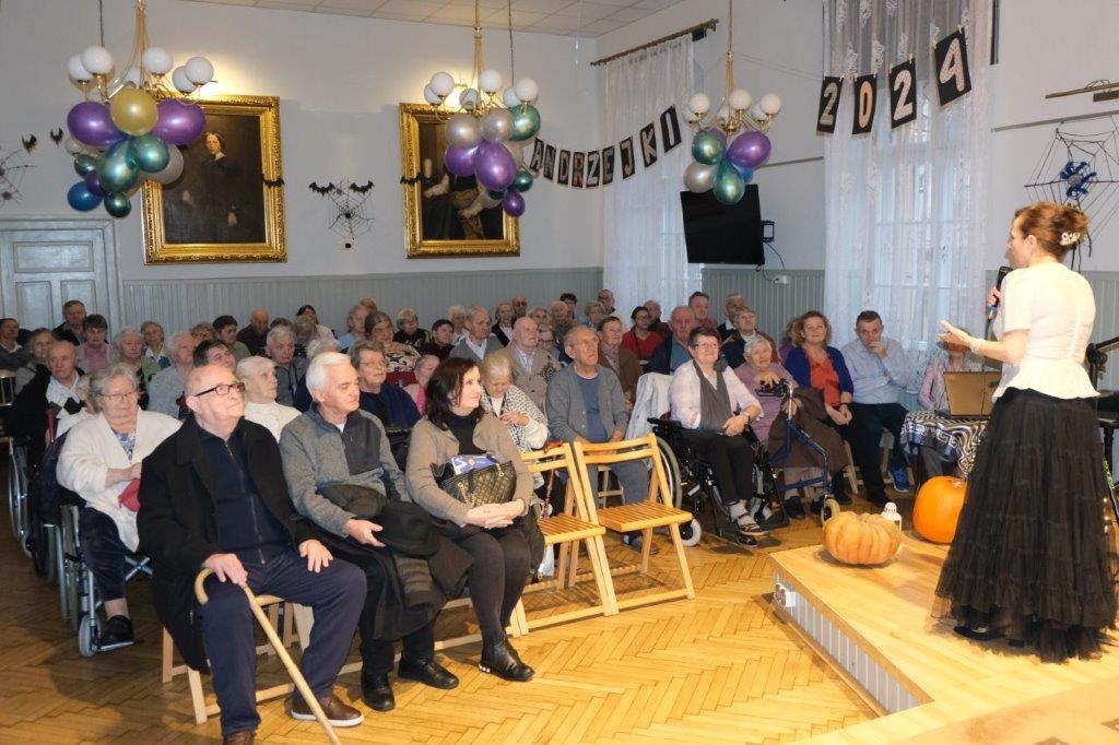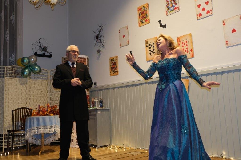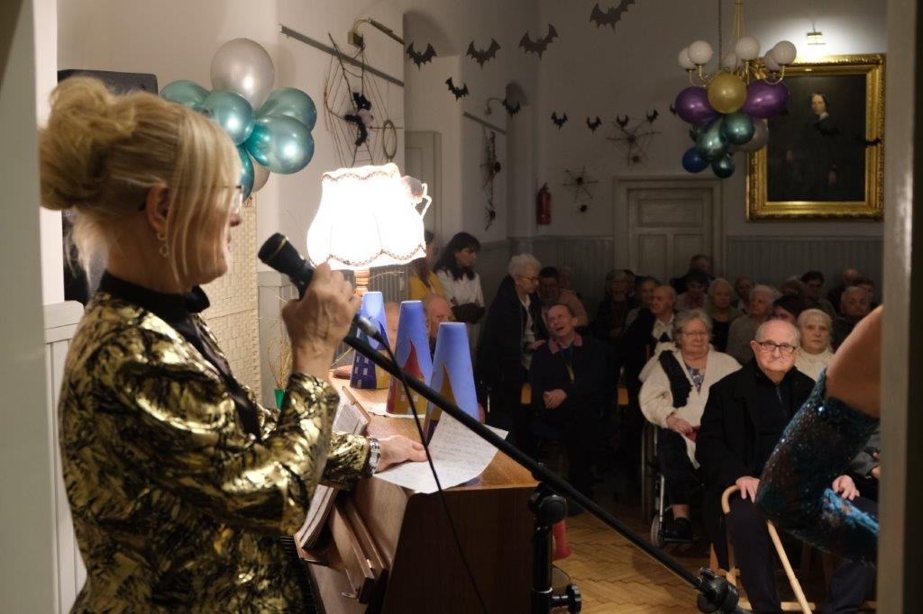 Po części kulinarnej prawdziwą ucztę dla melomanów zapewnili nam nasi wspaniali przyjaciele artyści operowi i operetkowi tj, Pani Bożena Zawiślak – Dolny oraz Pan Witold Wrona, którzy przy akompaniamencie i prowadzeniu koncertu przez Panią Renatę Żełobowską - Orzechowską zaserwowali nam wspaniały program artystyczny, na który składały się znane i mniej znane przedwojenne szlagiery. Występ naszych gości został zadedykowany, niedawno zmarłemu mieszkańcowi naszego Domu, mecenasowi i przyjacielowi artystów a także naszej placówki Panu Zenonowi Hajdudze.