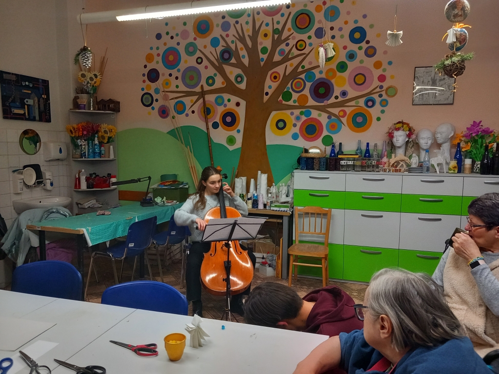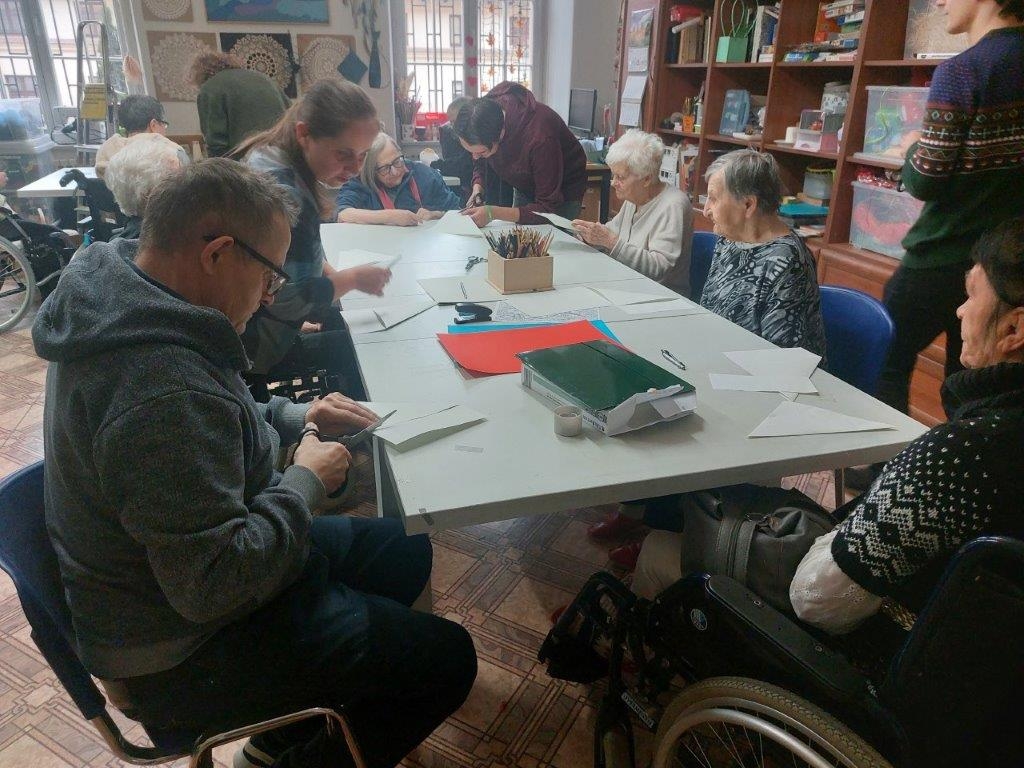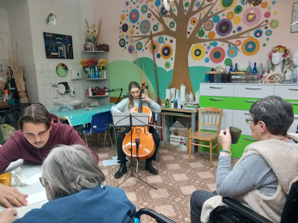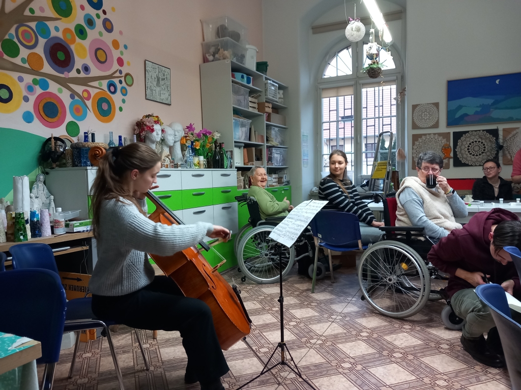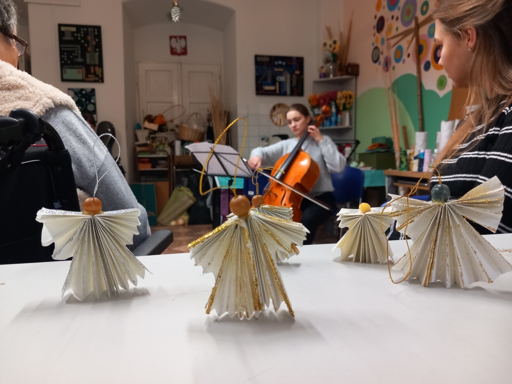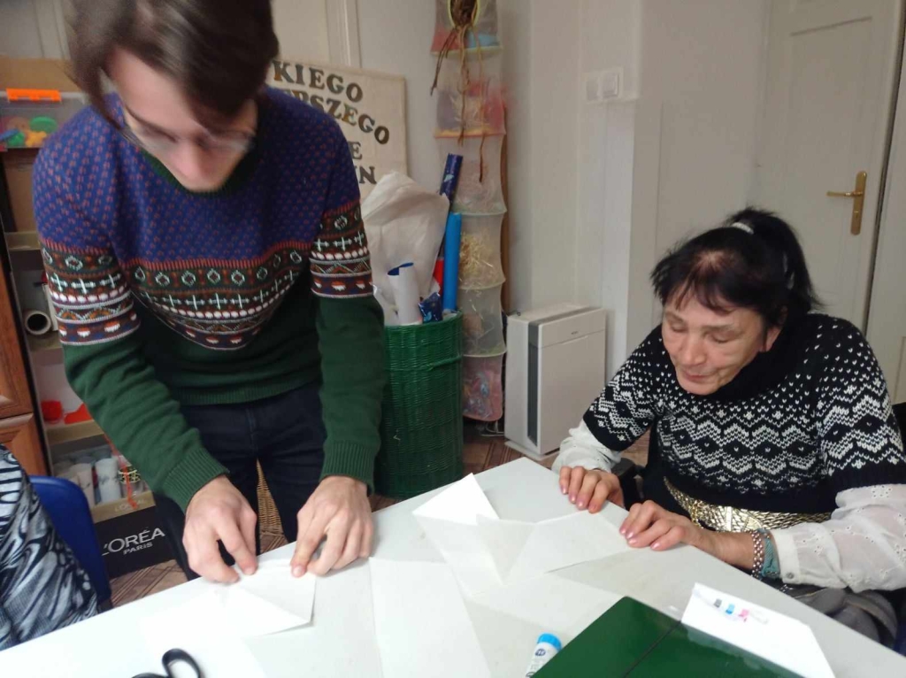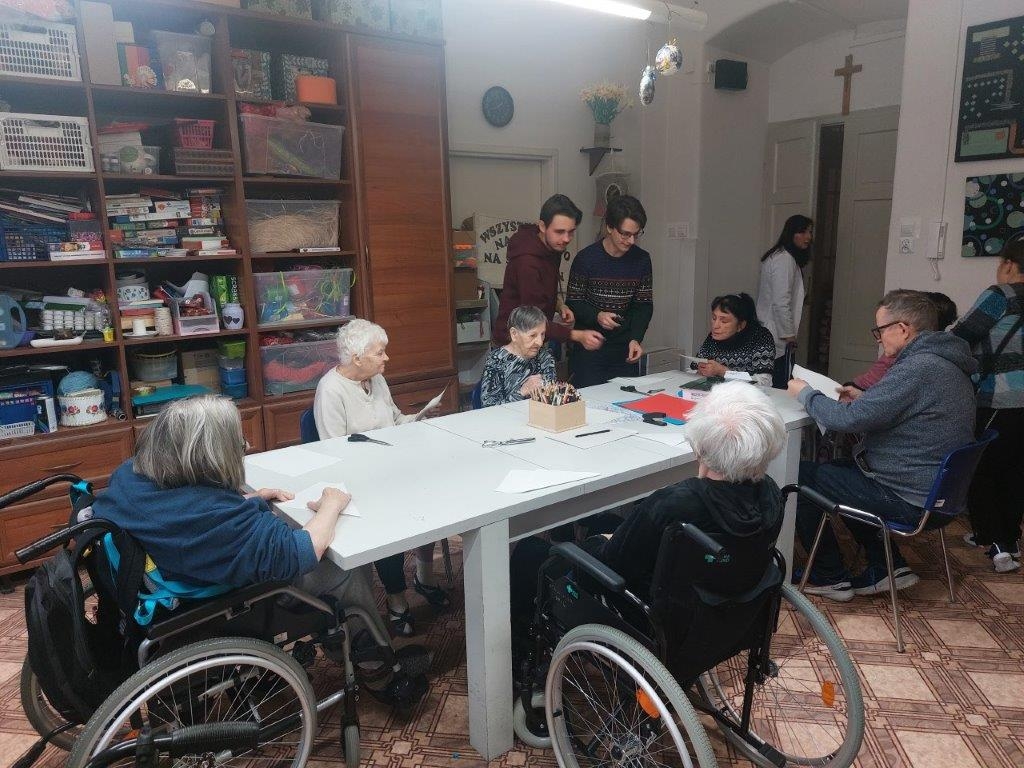 Wolontariusze z tej organizacji regularnie odwiedzają naszych seniorów, zapewniając różnego typu aktywności. Tym razem były to zajęcia arterapii, którego wiodącą techniką było origami, czyli sztuka tworzenia z papieru różnych przedmiotów - figurek, postaci bez użycia kleju i nożyczek. Prócz rozwoju kreatywności i wyobraźni, jest to bardzo dobra forma ćwiczeń manualnych Nasi goście sprawili nam dodatkową niespodziankę w postaci krótkiego wiolonczelowego minirecitalu. Był to miło i pożytecznie spędzony czas przy pięknej muzyce, w gronie życzliwych osób, za który serdecznie dziękujemy.