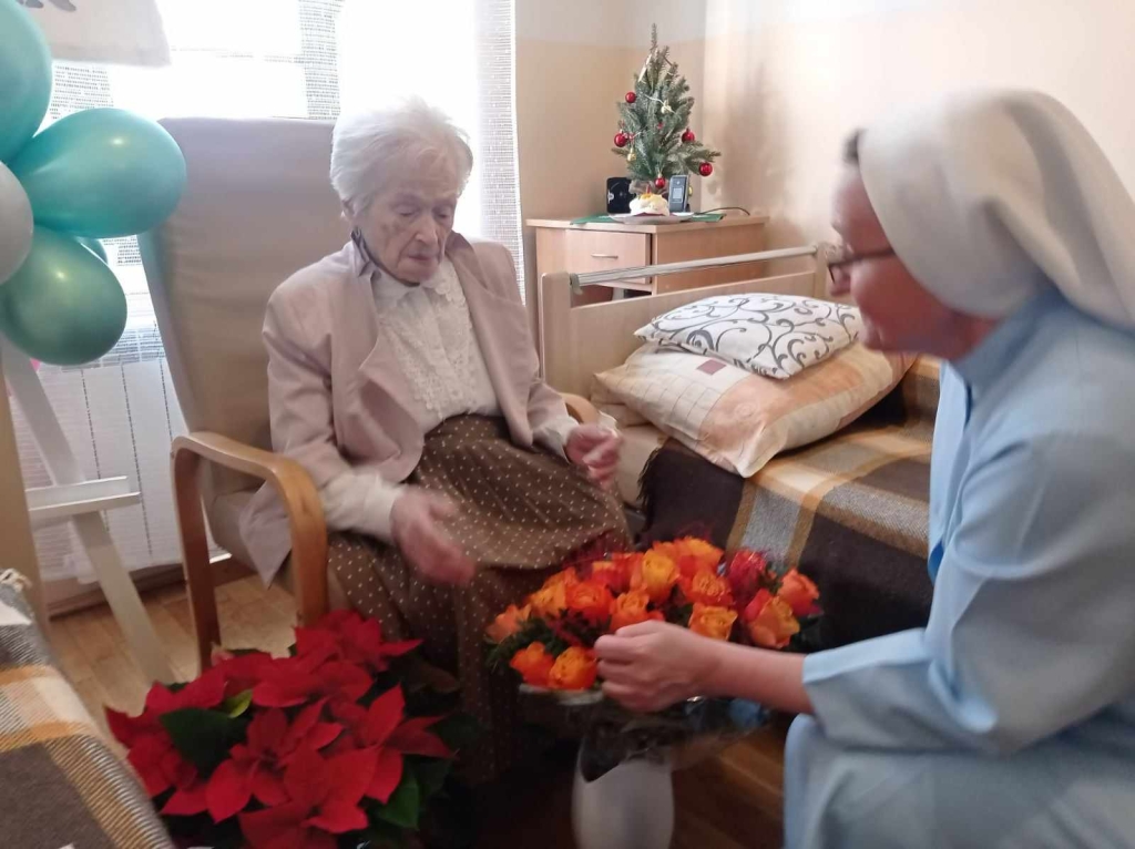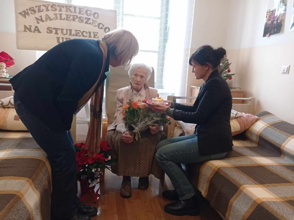 Z okazji tak wspaniałego jubileuszu odbyło się dzisiaj tj: 17 grudnia 2024 roku w kameralnym gronie, ale bardzo uroczyste spotkania urodzinowe, w którym uczestniczyła reprezentacja pracowników Naszego Domu z Panią dyrektor Józefą Grodecką na czele.