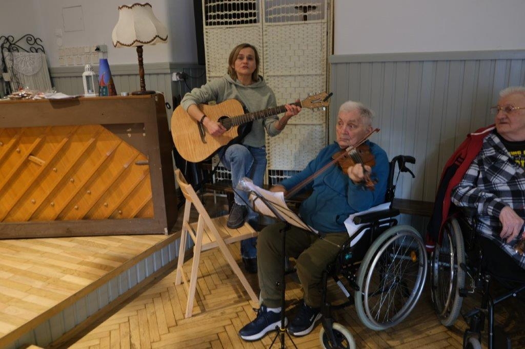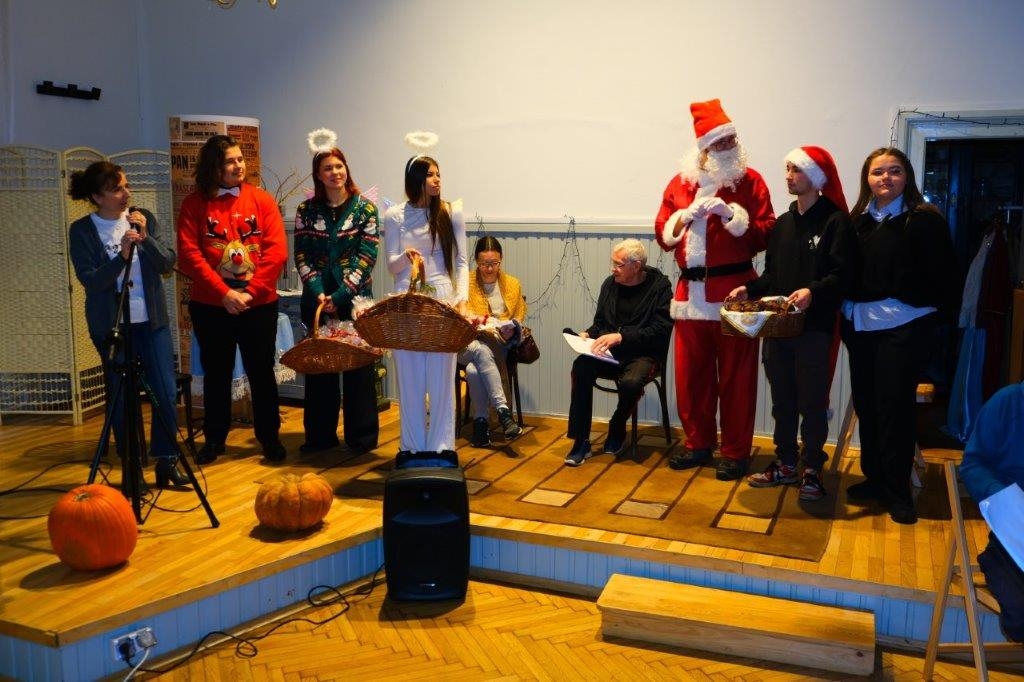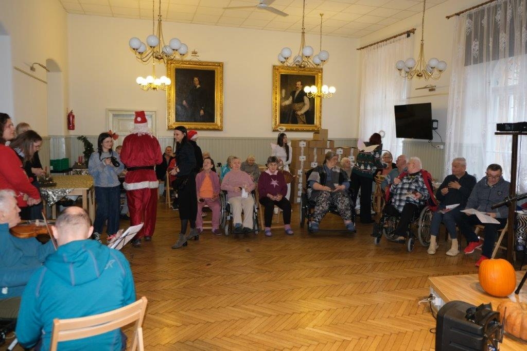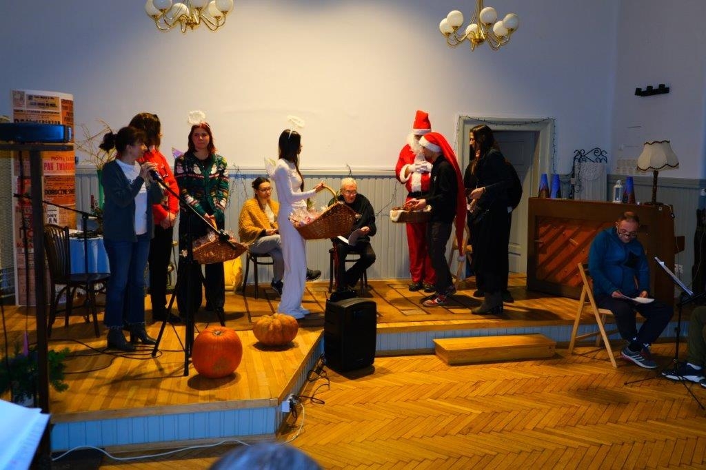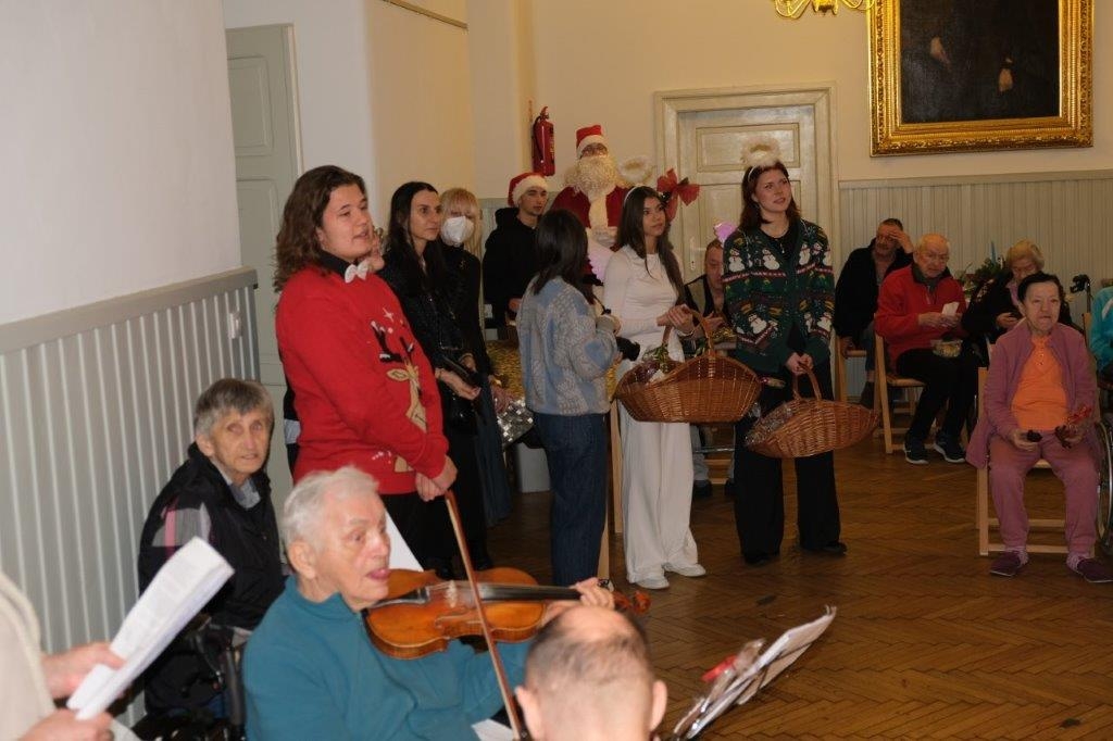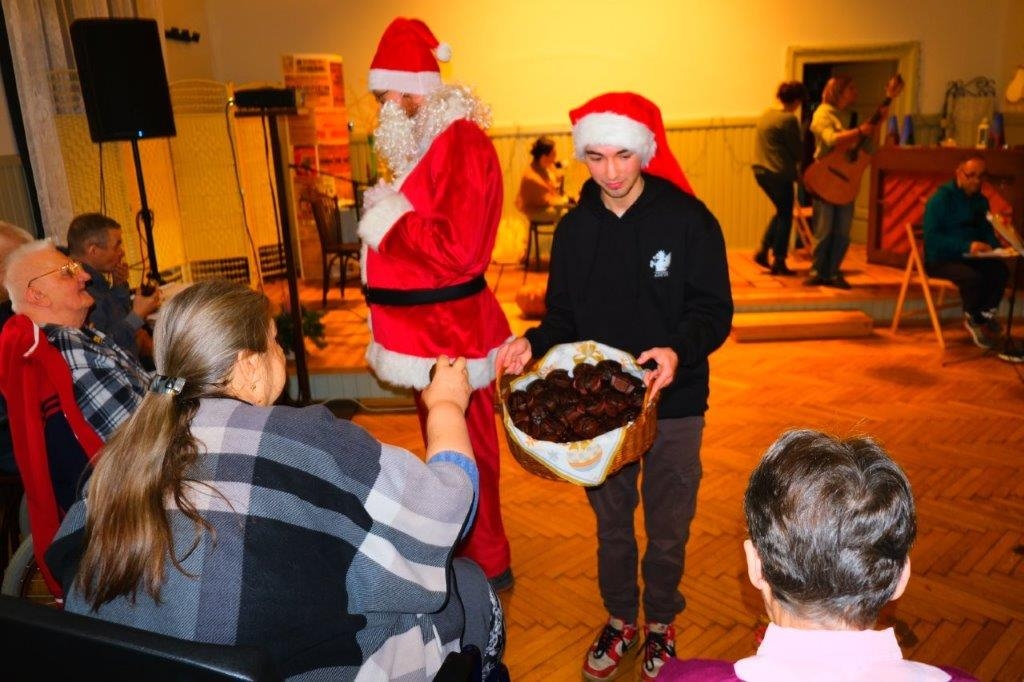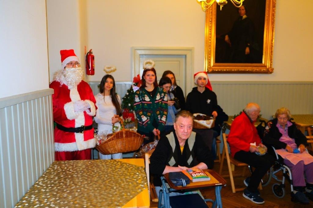 Tego dnia zajęcia teatroterapiii na której odbywała się próba jasełkowego występu, zostały przerwane przedświątecznymi wizytami miłych gości. Byli to uczniowie z dwóch krakowskich Zespołów Szkół tj: Gastronomicznych nr 2 im. Odona Bujwida oraz Poligraficzno-Medialnych im. Zenona Klemensiewicza. Młodzież wraz i nauczycielami przyniosła w darze naszym seniorom nie tylko wspaniałe, własnego wykonania słodkości oraz piękne kartki, ale przede wszystkim wiele uśmiechu i świąteczny klimat. Był Mikołaj, aniołki oraz wspólne śpiewanie kolęd.