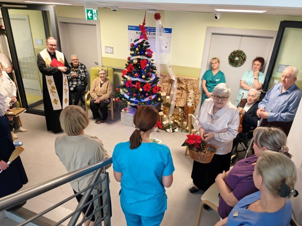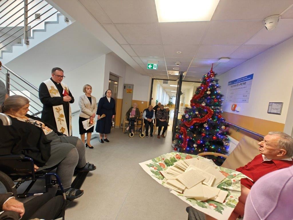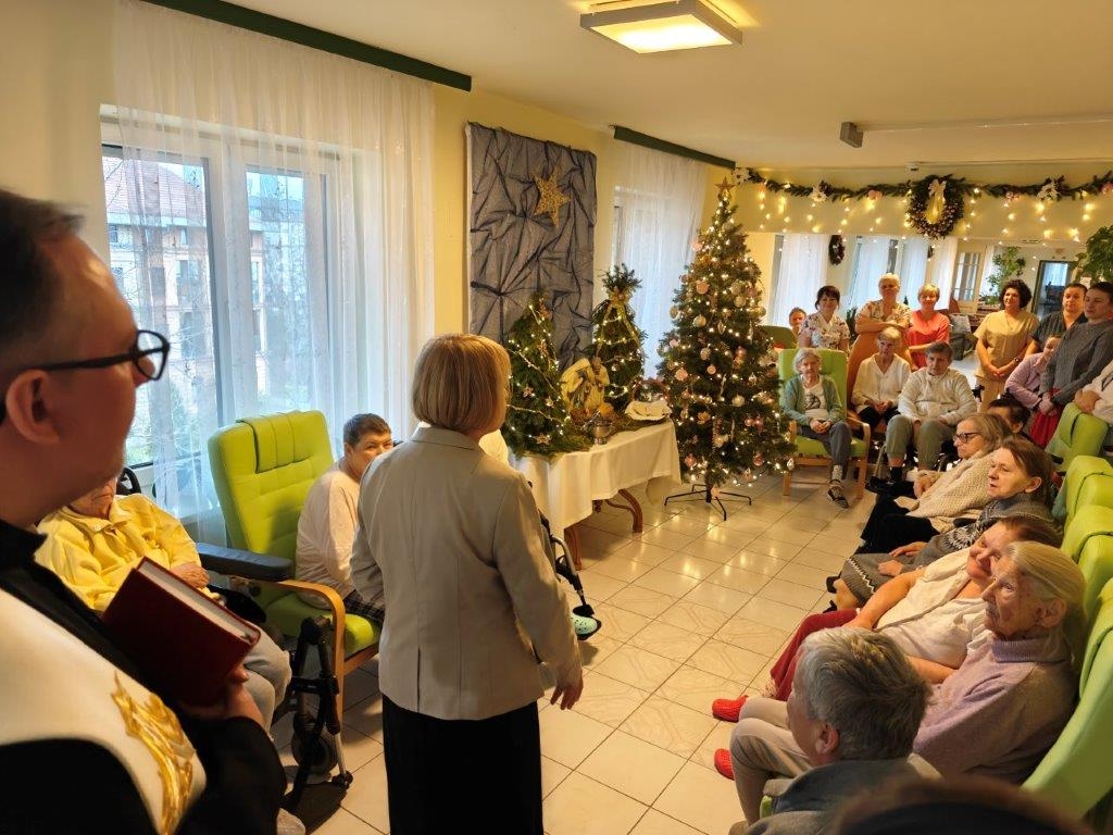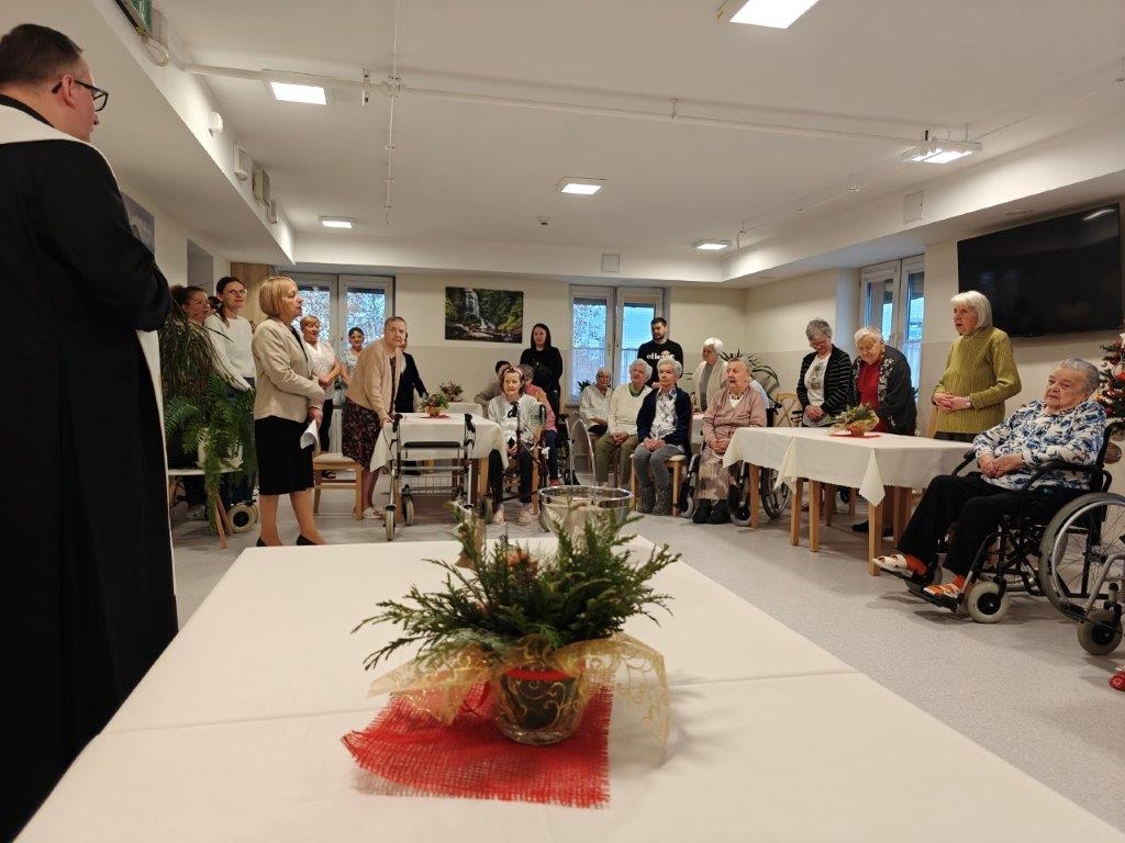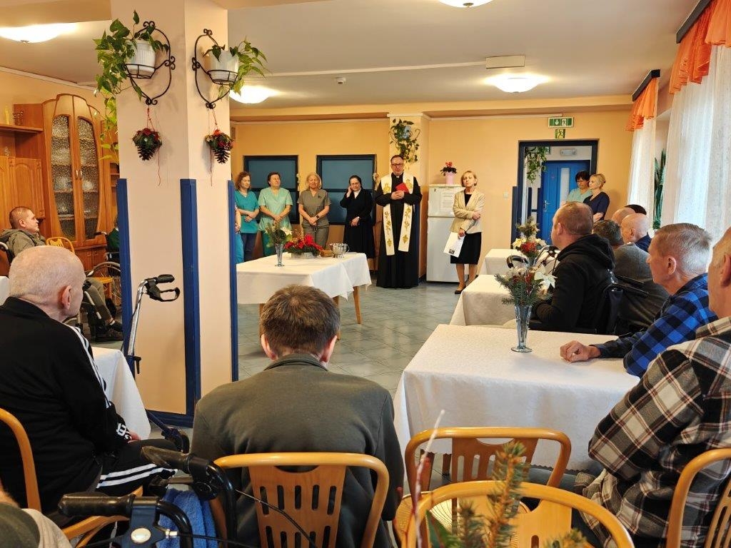 W piątek, 20 grudnia na kilka dni przed Wigilią Świąt Bożego Narodzenia Pani dyrektor Józefa Grodecka wraz ze współpracownikami oraz księdzem kapelanem odwiedziła mieszkańców wszystkich Zespołów Pielęgnacyjno – Opiekuńczych.