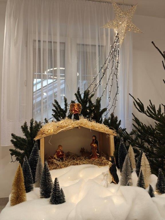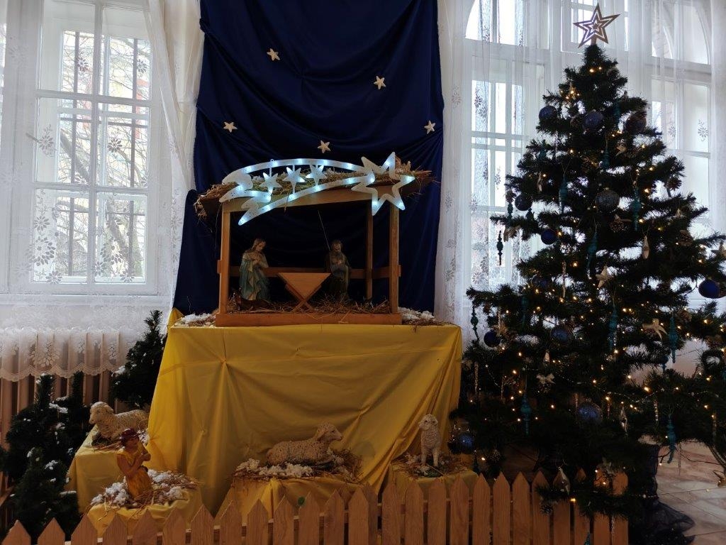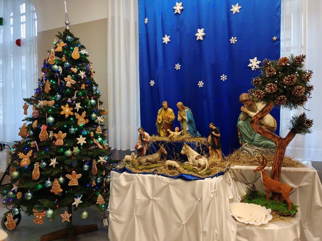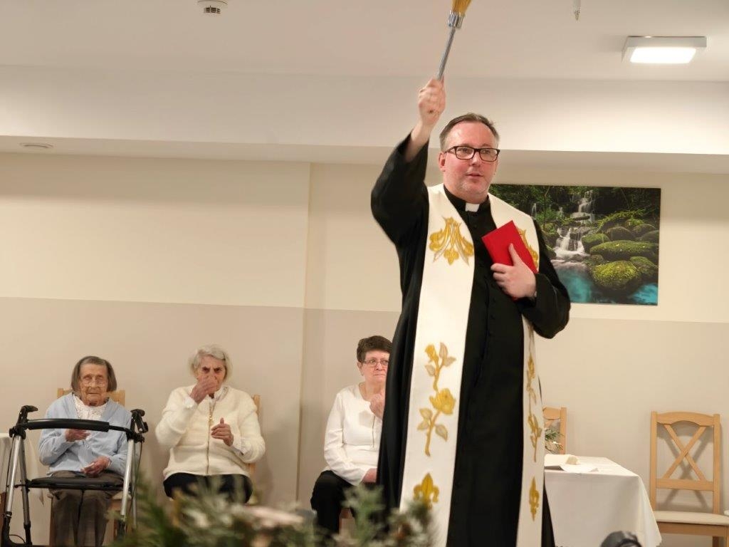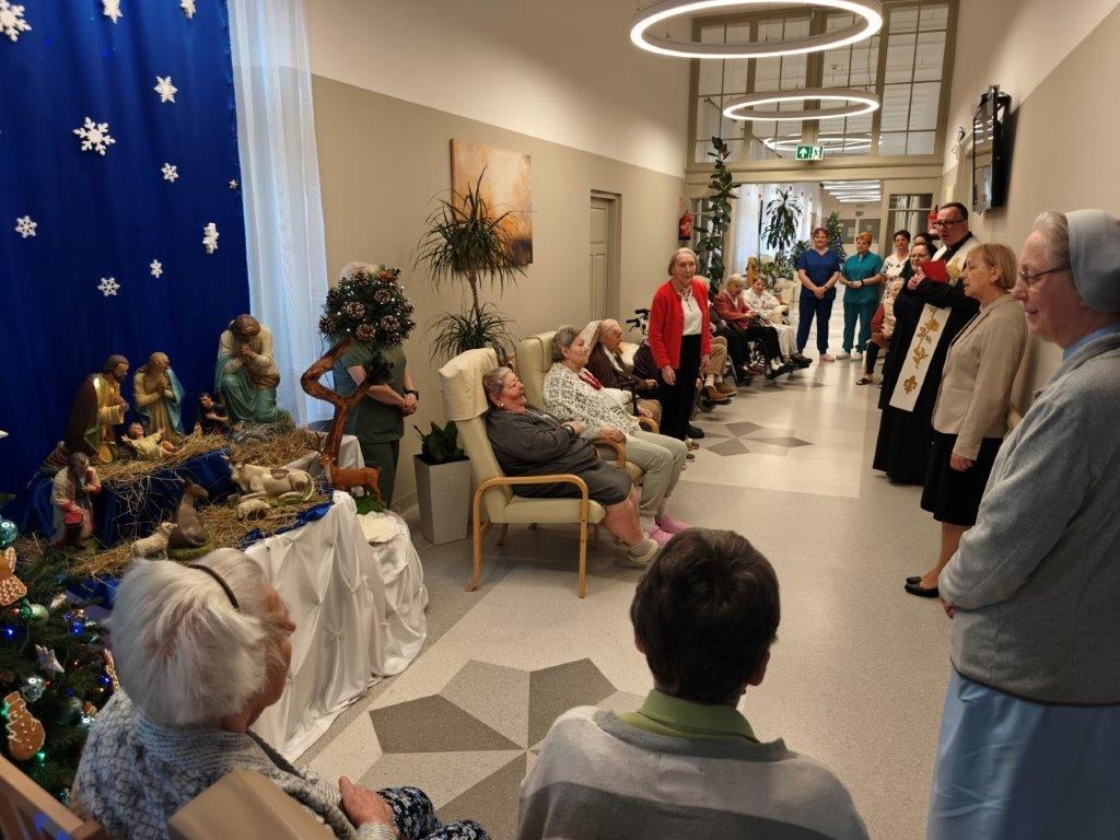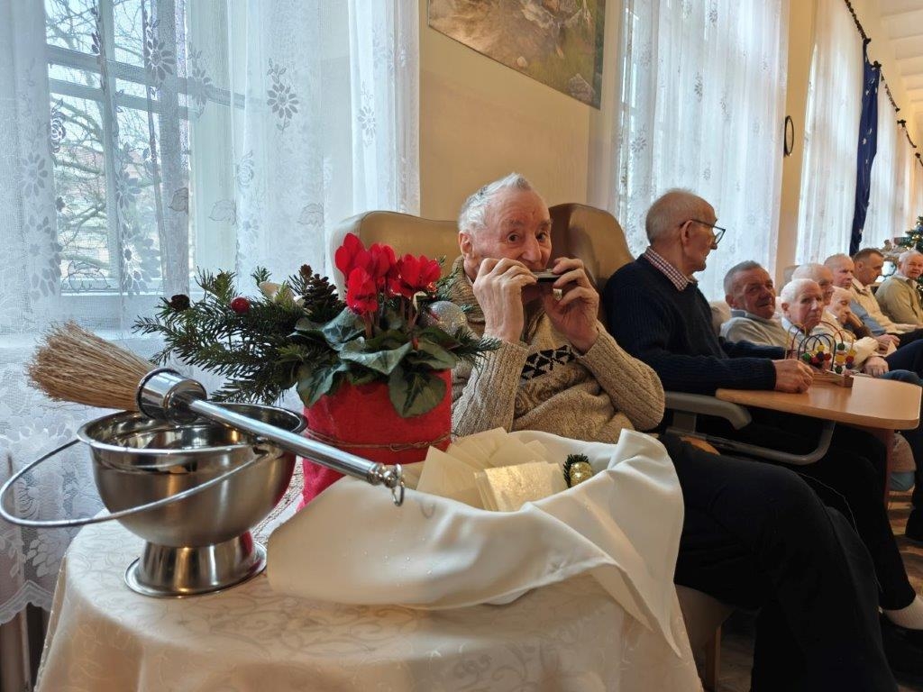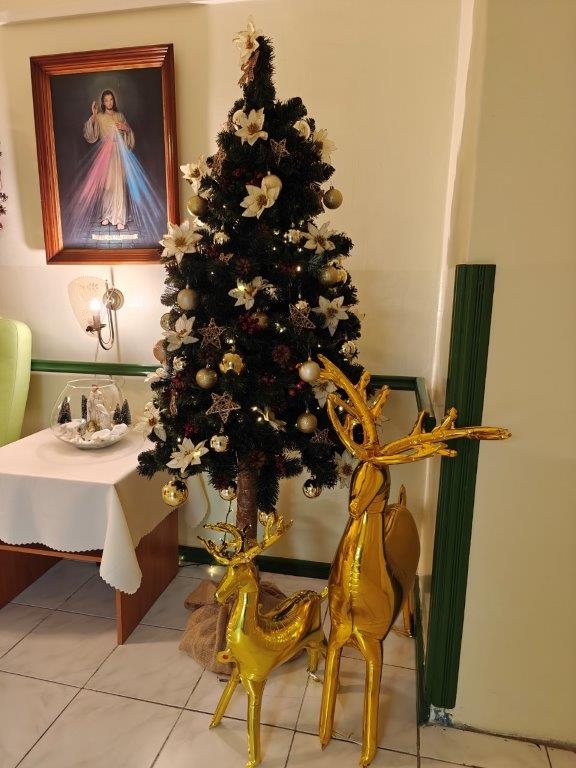 Atmosfera była już iście świąteczna, a to w dużej mierze dzięki staraniom pracowników Zespołów, którzy włożyli dużo pracy i inwencji w odświętne dekoracje, prezentowane poniższej w fotogalerii. Pani dyrektor złożyła naszym seniorom serdeczne życzenia z okazji Świąt i nadchodzącego Nowego Roku 2025, a ksiądz kapelan pobłogosławił zebranych. W trakcie wizyty nie zabrakło wspólnej modlitwy, życzeń oraz wspólnego kolędowania.