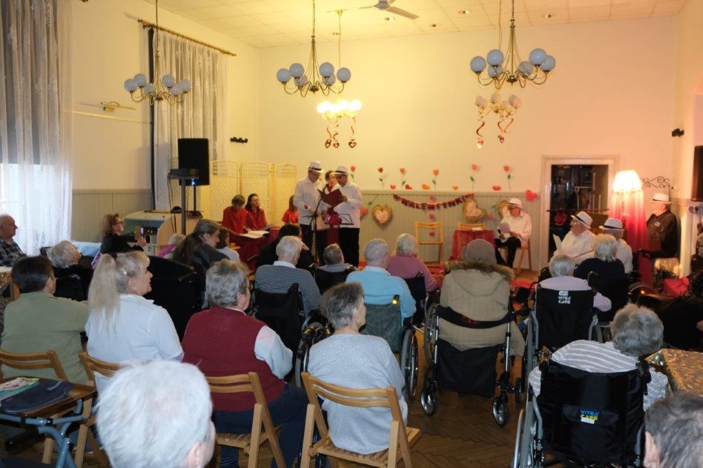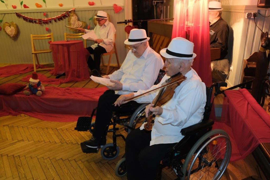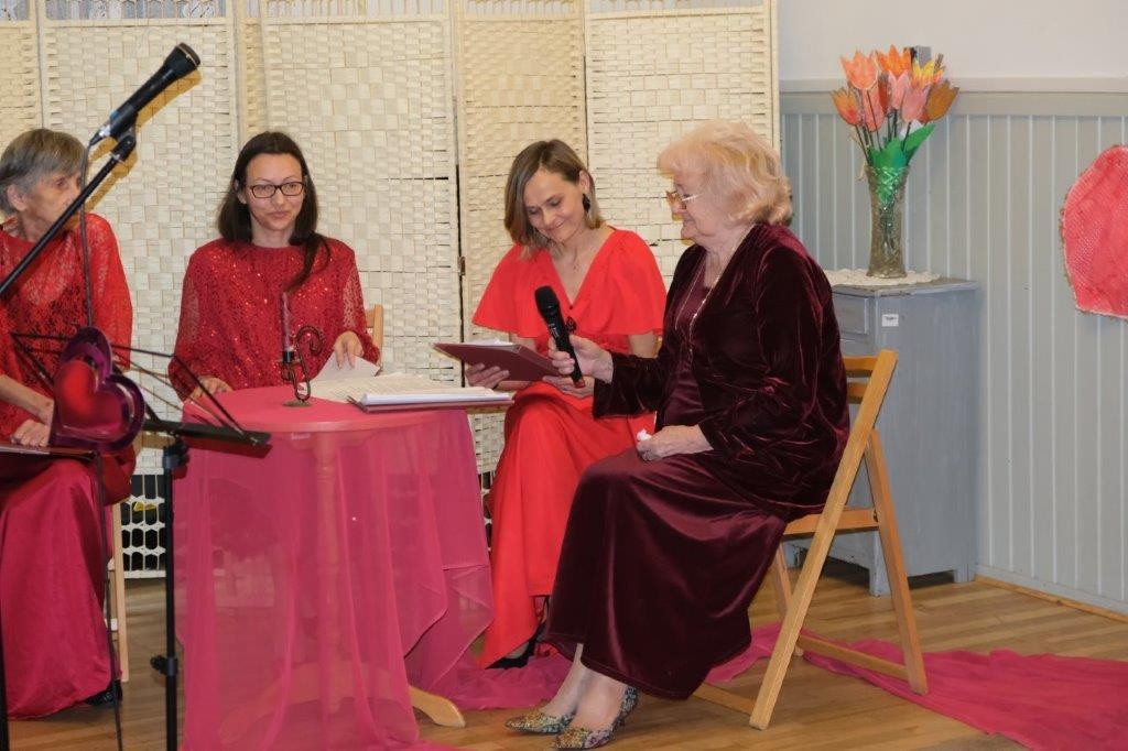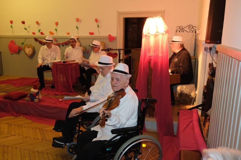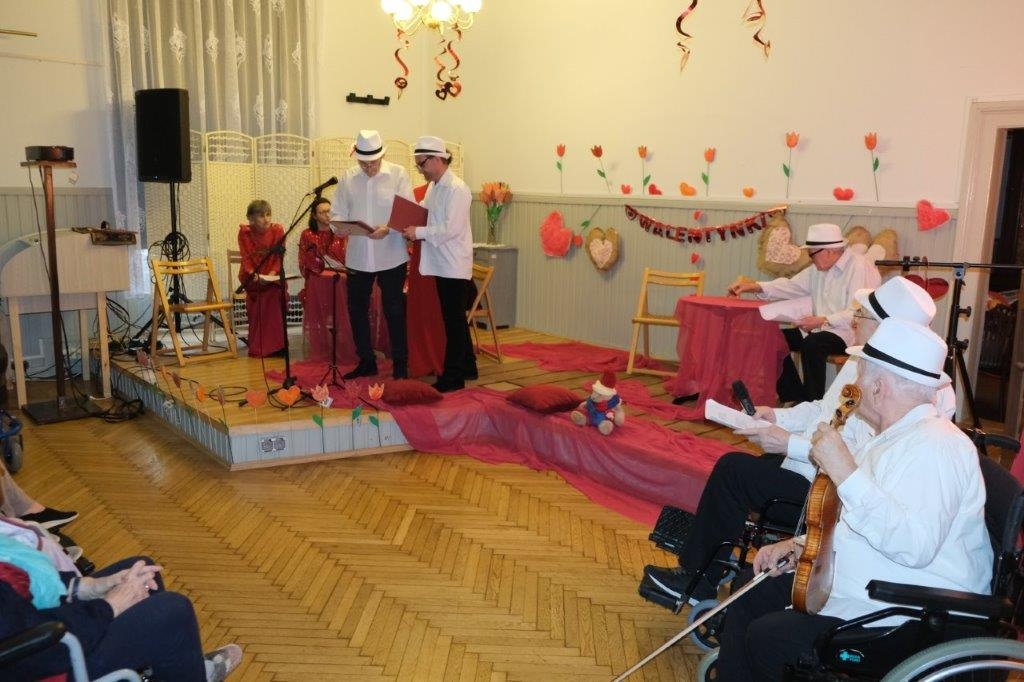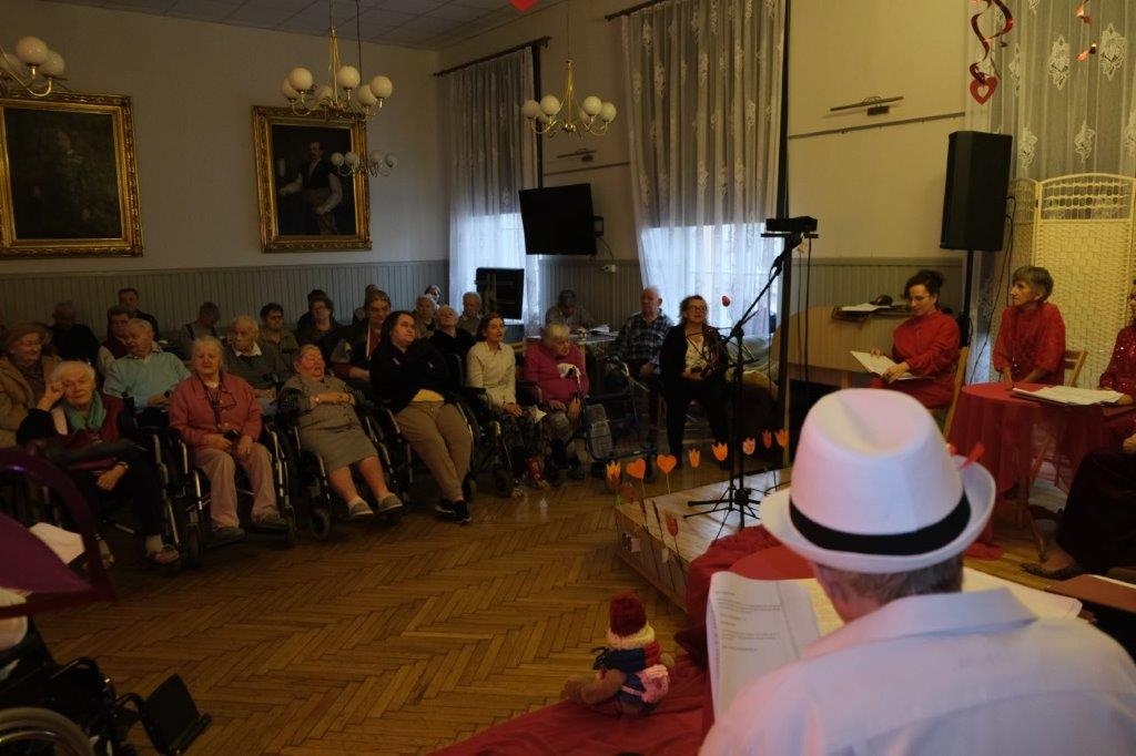 W naszym Domu, również obchodzimy to święto, bo na miłość nigdy nie jest za późno. Nasza Grupa Artystyczna „Wrzos” przygotowała na ten dzień pełen miłosnych klimatów program, na który składała się poezja miłosna anonimowych autorów, przeplatana piosenkami Hanki Ordonówny, Marka Grechuty oraz zespołów Maanam i Czerwonych Gitar. Oczywiście dobór utworów nie był przypadkowy. Tytuły takie jak: „Nie dokazuj miła, nie dokazuj”, „Ocalić od zapomnienia”, „Miłość ci wszystko wybaczy”, „Bez ciebie umieram”, „Kochaj mnie” wprowadziły wszystkich uczestników tego wydarzenia w odpowiedni do tematyki świąteczny nastrój.