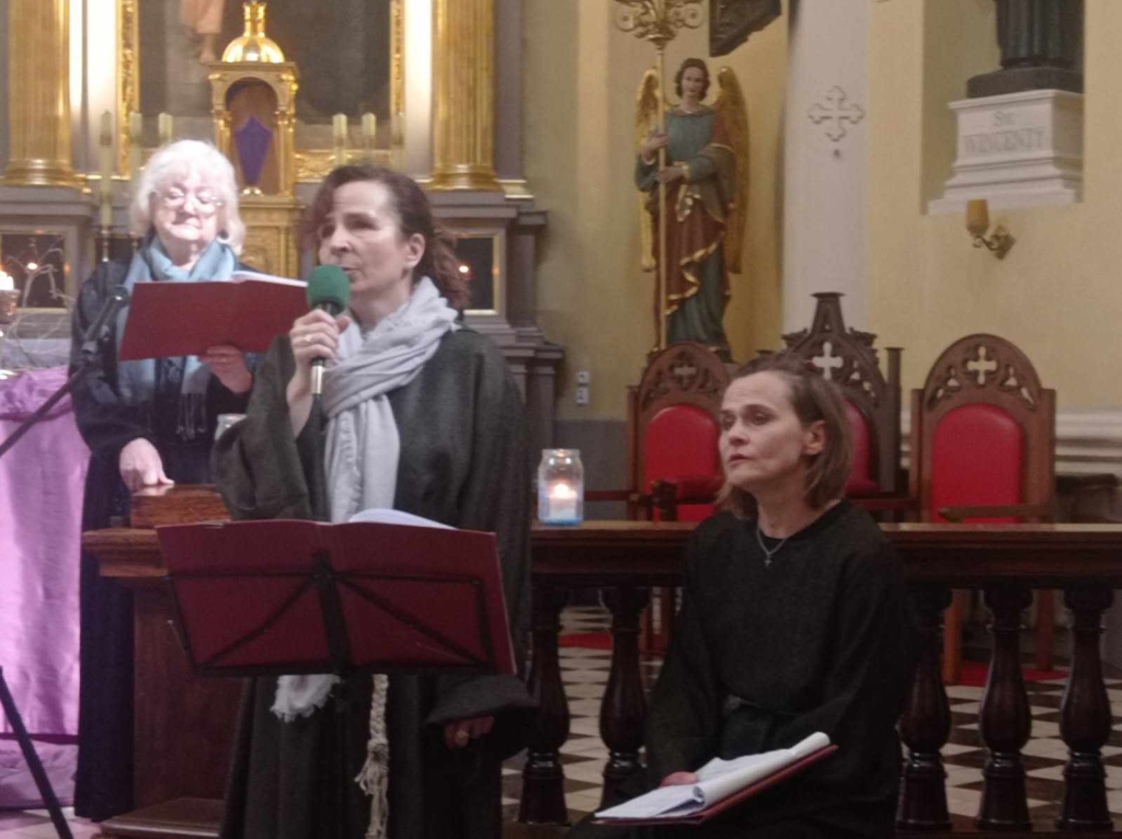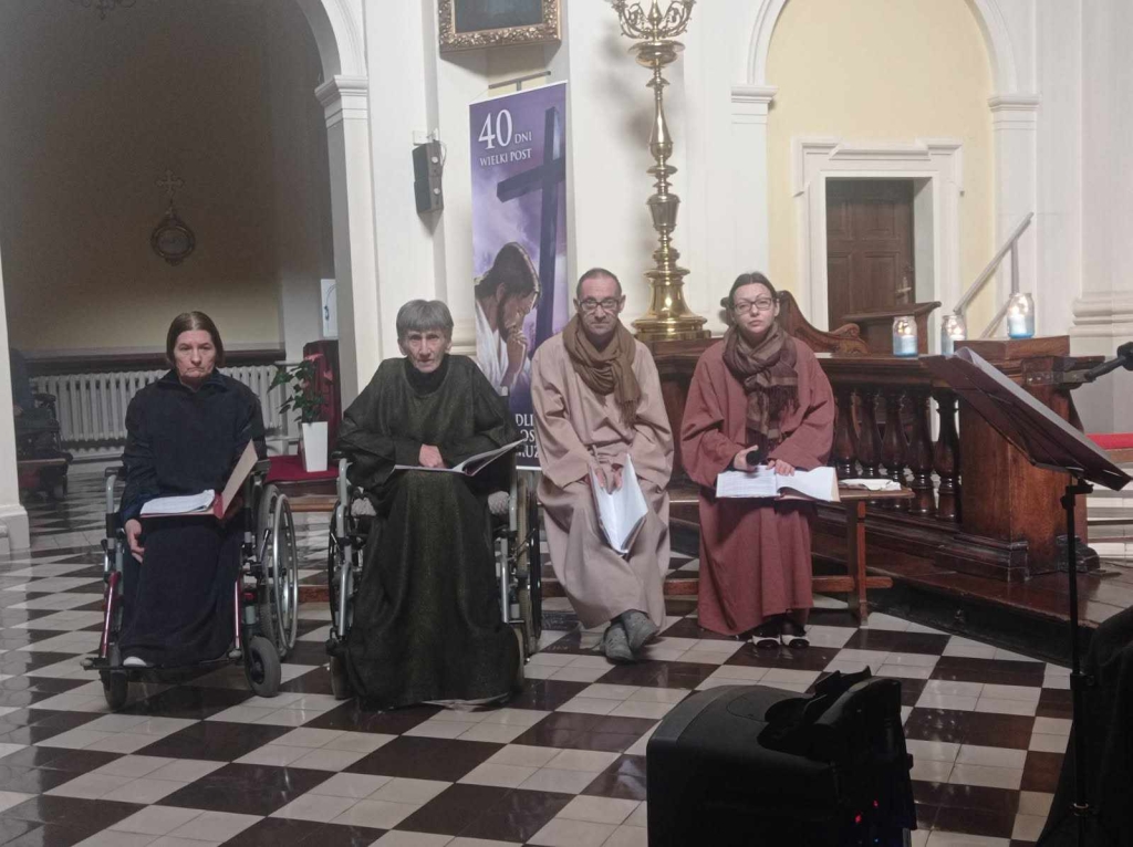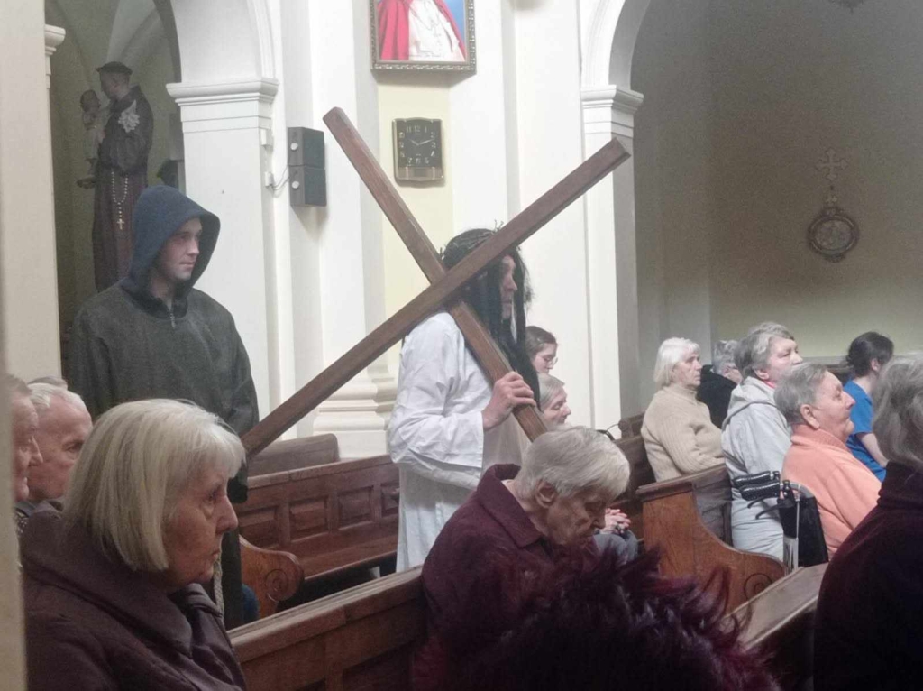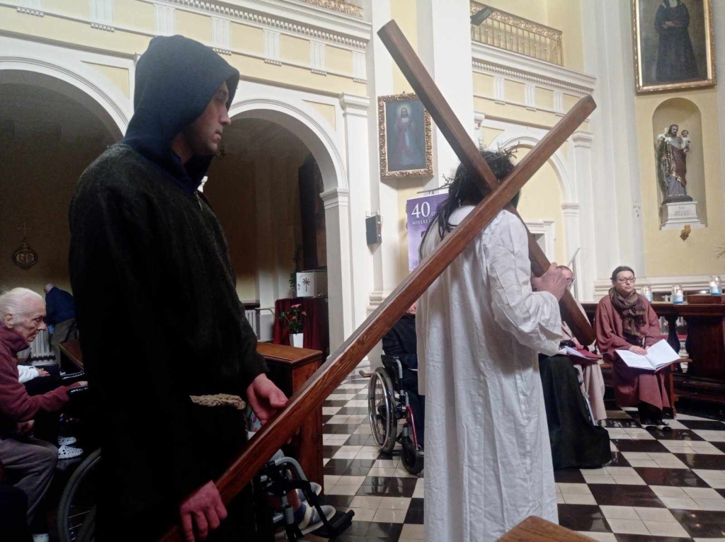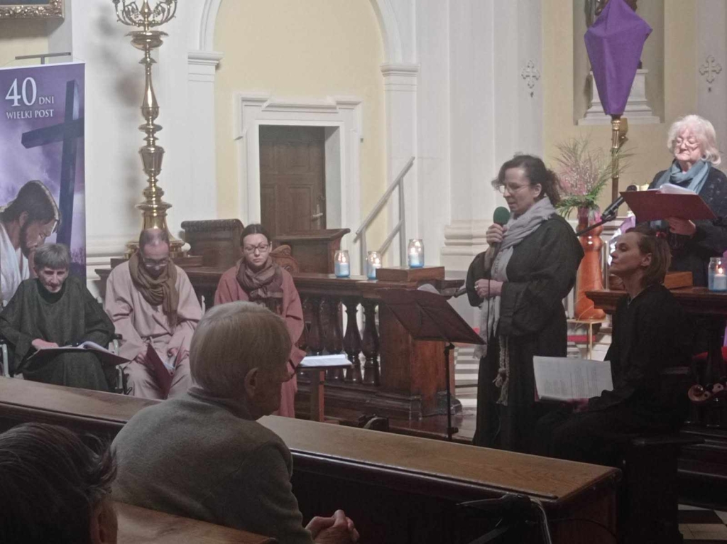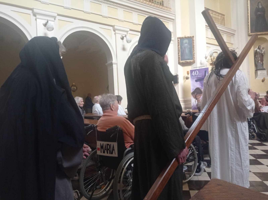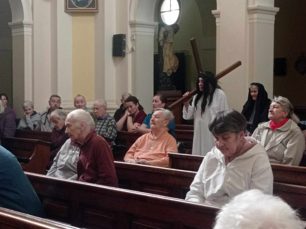 „Chociaż każdy umiera, sam nie umiera jednak samotnie” . I tak licznie zgromadzona publiczność mogła być świadkiem przywołanych wydarzeń, kiedy to Jezus spotyka tych, którzy chcieli iść z Nim w Jego ostatnią drogę życia do końca. Inscenizacja oparta na cytatach z Pisma Świętego oraz pieśniach wielkopostnych wprowadziła wszystkich w nastrój zadumy i oczekiwania. Oczekiwania na uroczyste świętowanie Męki Pana Jezusa, śmierć na krzyżu ale nade wszystko na niedzielę wielkanocną czyli tryumfu życia nad śmiercią - Zmartwychwstanie.