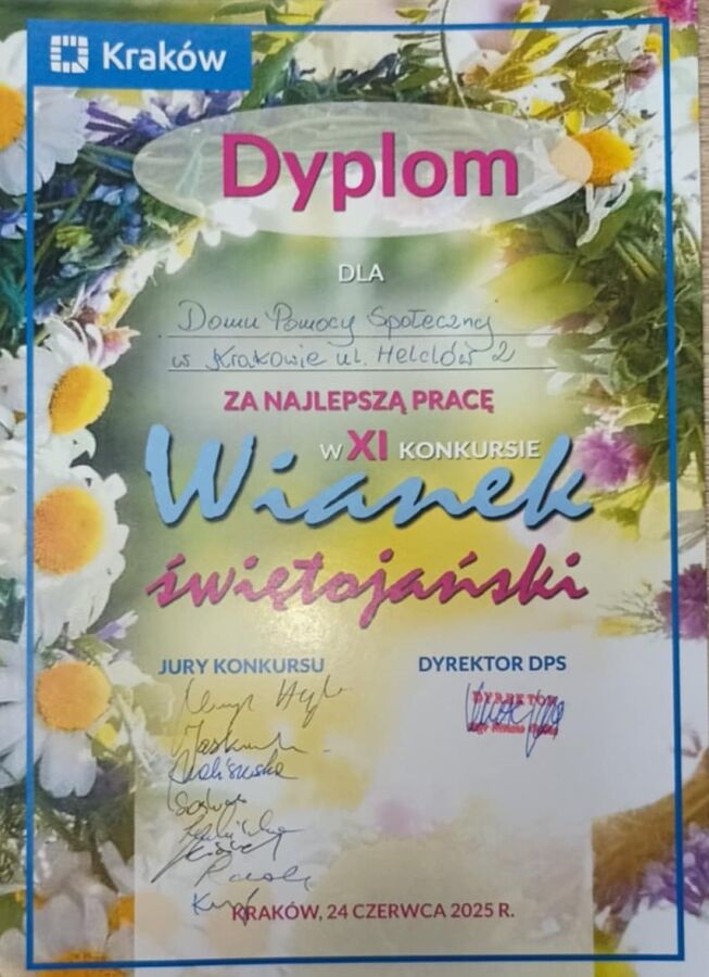 24 czerwca 2025 w Domu Pomocy Społecznej w Krakowie przy ulicy Łanowej 39 odbyło się już jedenasty finał konkursu na najpiękniejszy świętojański wianek.