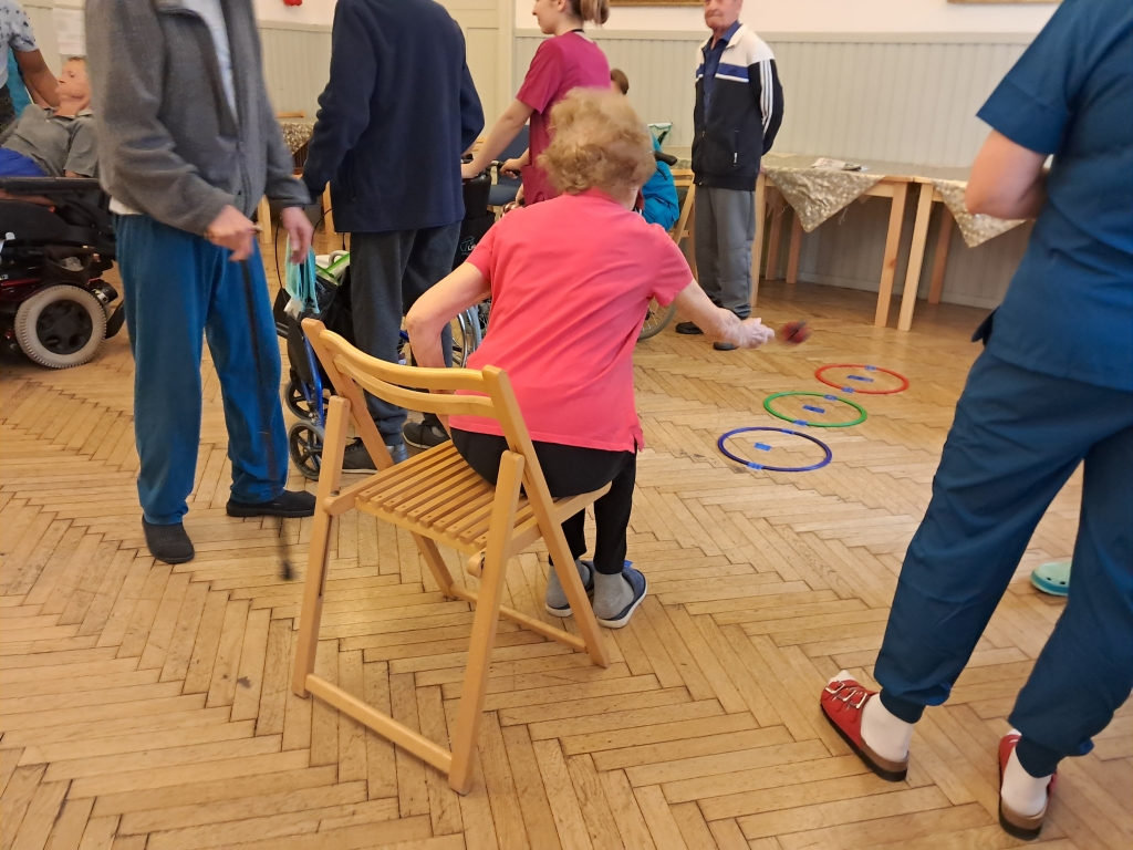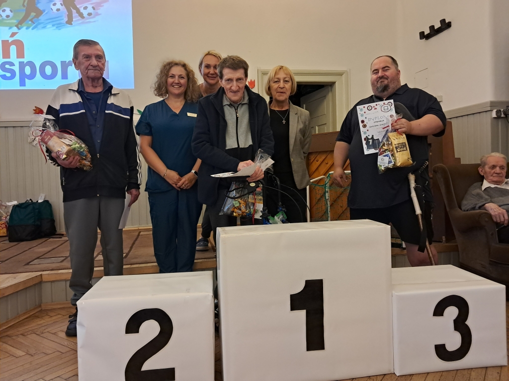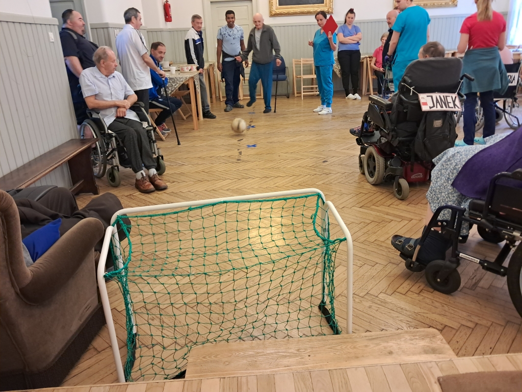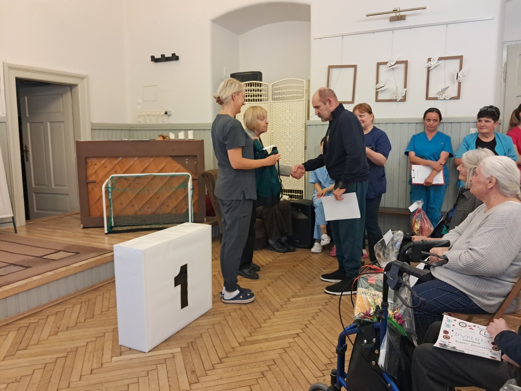 W czwartkowe przedpołudnie - 10 czerwca 2025 roku, w naszym Domu odbył się 8 Dzień Sportu zorganizowany przez pracowników Działu Rehabilitacji przy udziale terapeutów zajęciowych oraz pracowników gospodarczych. O poczęstunek dla sportowców zadbali pracownicy kuchni Domu.
