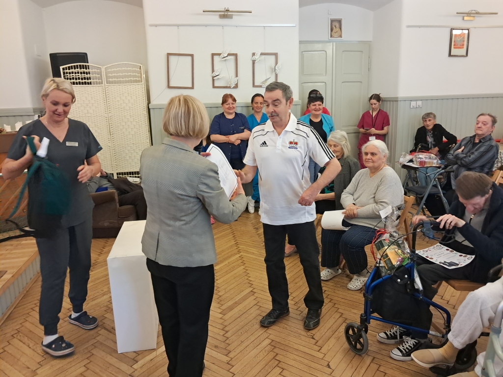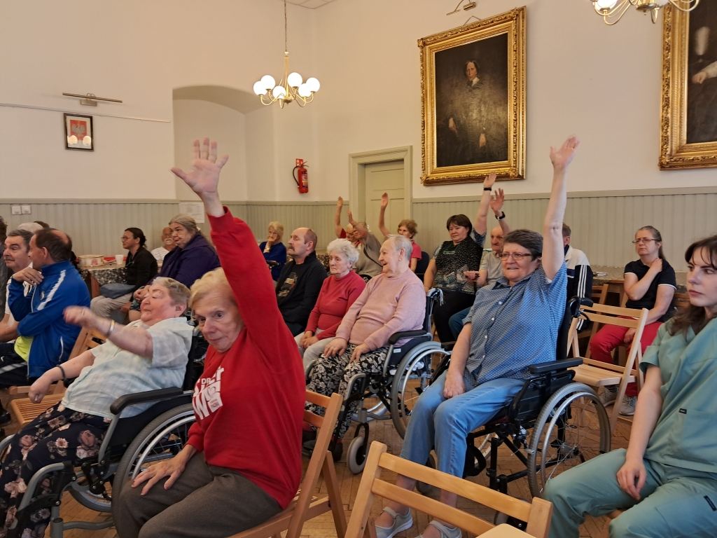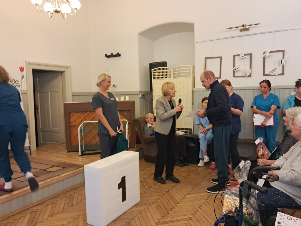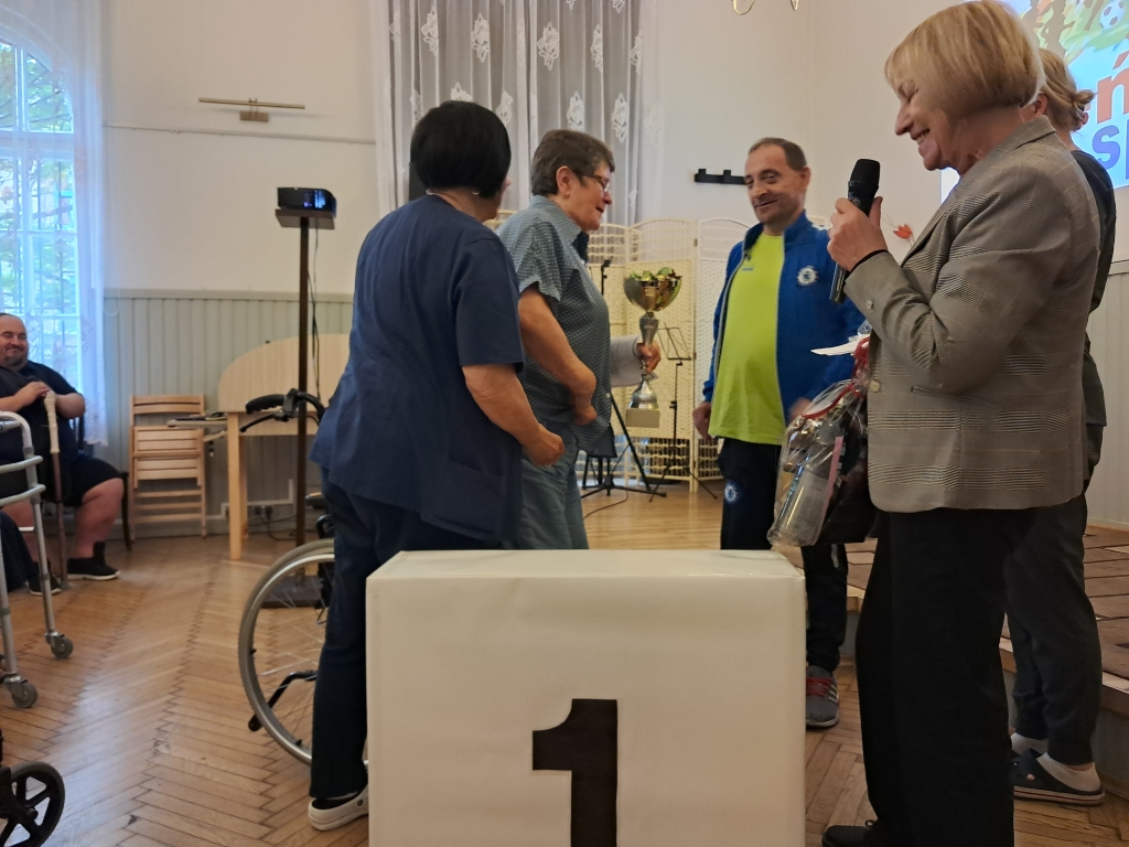 W czwartkowe przedpołudnie - 10 czerwca 2025 roku, w naszym Domu odbył się 8 Dzień Sportu zorganizowany przez pracowników Działu Rehabilitacji przy udziale terapeutów zajęciowych oraz pracowników gospodarczych. O poczęstunek dla sportowców zadbali pracownicy kuchni Domu.