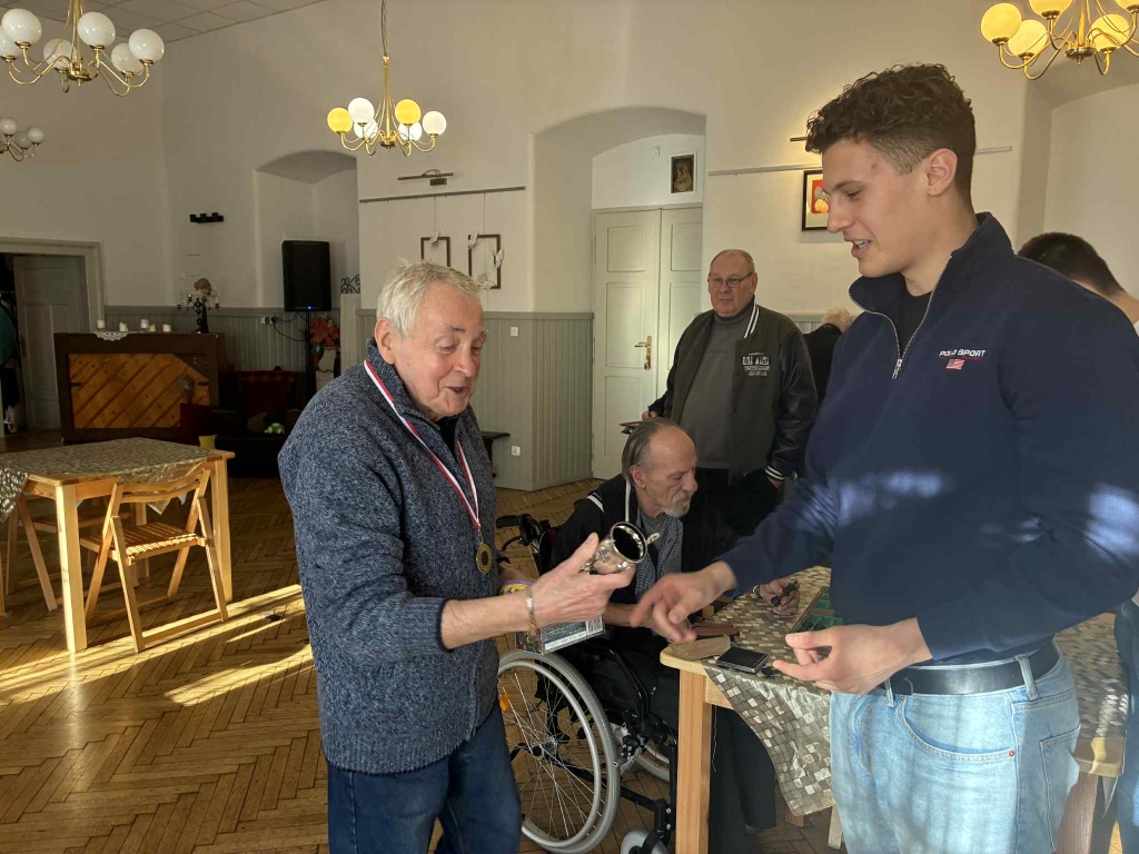 Nasi seniorzy chętnie wzięli udział w rozgrywkach. Przed rozpoczęciem turnieju była możliwość przypomnienia sobie zasad gry oraz poćwiczenia przed turniejowymi partiami, dzięki czemu każdy mógł poczuć się pewnie i komfortowo. Całe wydarzenie przebiegło w miłej i przyjaznej atmosferze, pełnej sportowych emocji i wzajemnego wsparcia. Zwieńczeniem turnieju było uroczyste wręczenie dyplomów oraz pucharów, co sprawiło uczestnikom ogromną satysfakcję i radość.