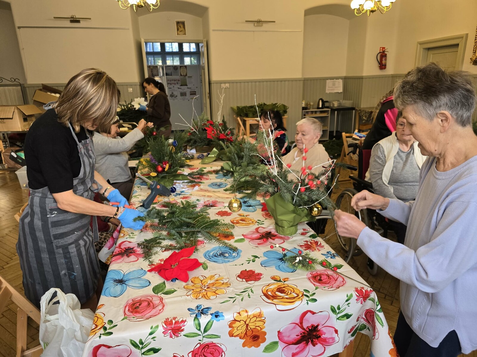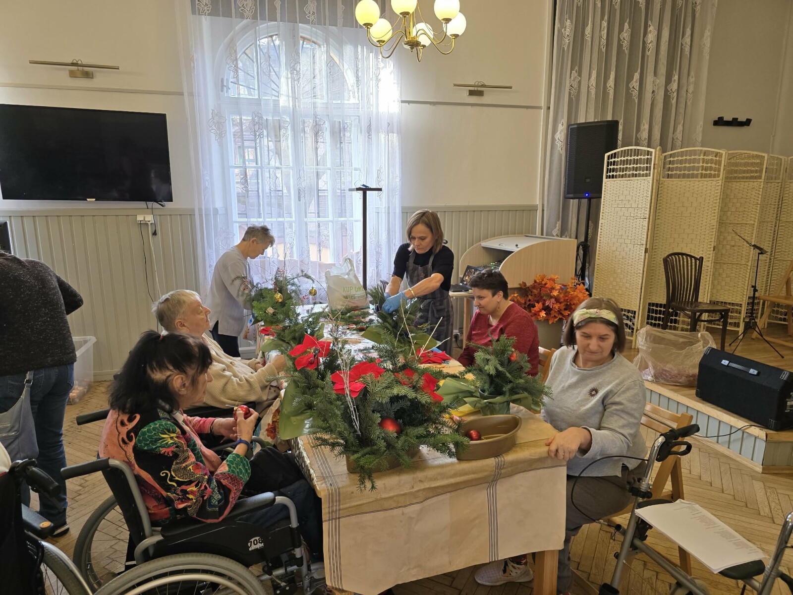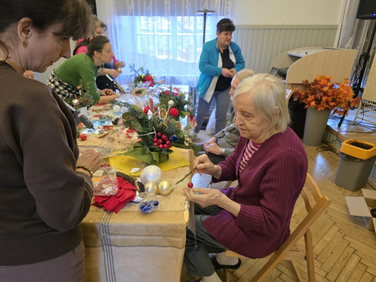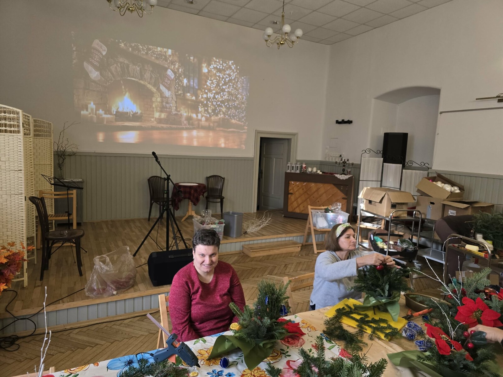 Podczas warsztatów uczestnicy mieli możliwość samodzielnego wykonania dekoracji świątecznych, takich jak ozdoby choinkowe, stroiki oraz inne elementy świątecznego wystroju. Organizatorzy zapewnili wszystkie niezbędne materiały, co pozwoliło uczestnikom swobodnie realizować własne pomysły i twórcze inspiracje. Zajęcia sprzyjały rozwijaniu kreatywności, zdolności manualnych oraz dawały wiele radości i satysfakcji z własnoręcznie wykonanych prac. Wspólna praca stworzyła okazję do rozmów, wymiany doświadczeń oraz budowania relacji w serdecznej, świątecznej atmosferze.