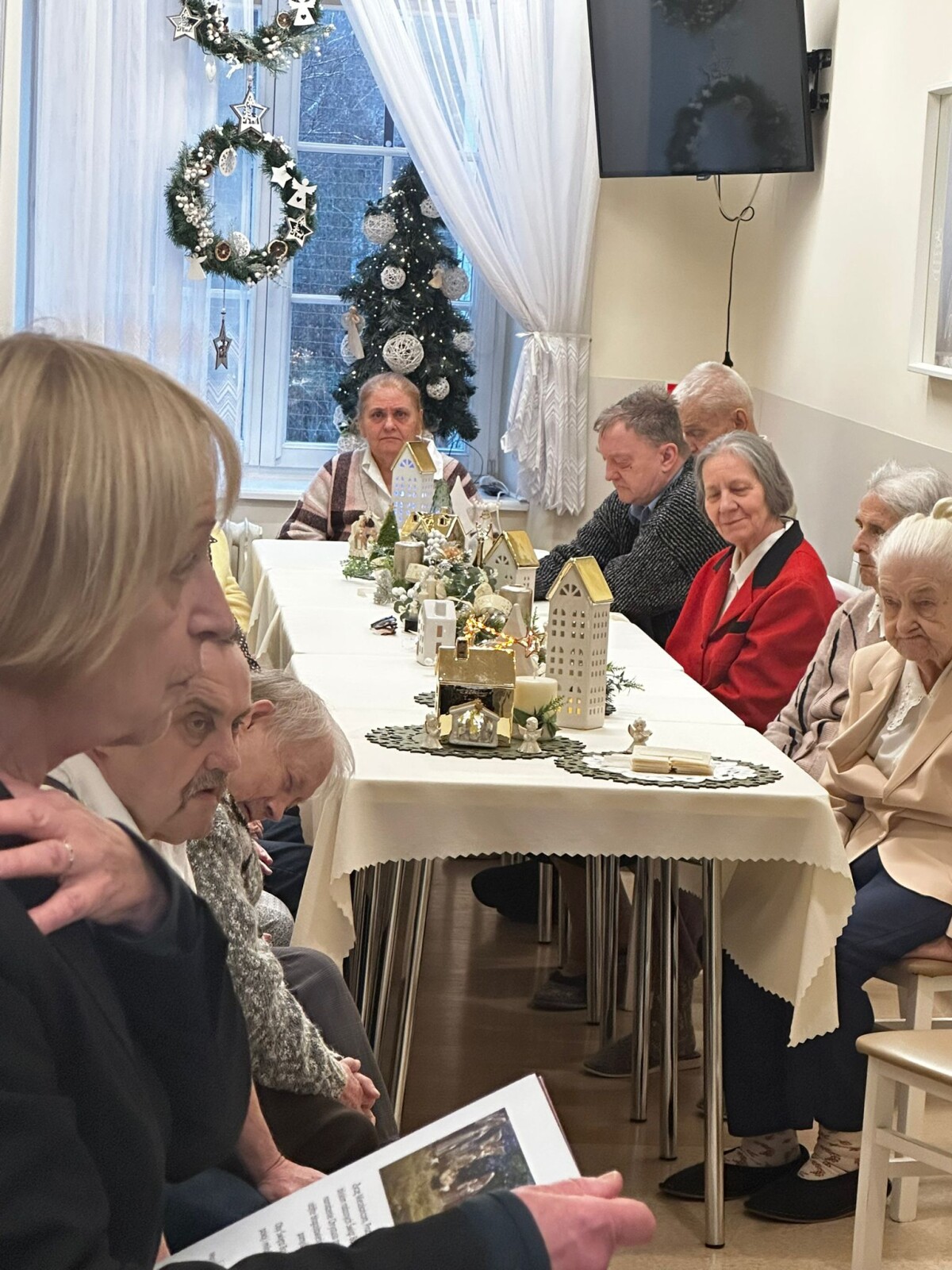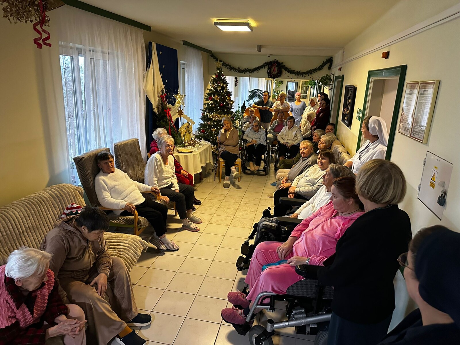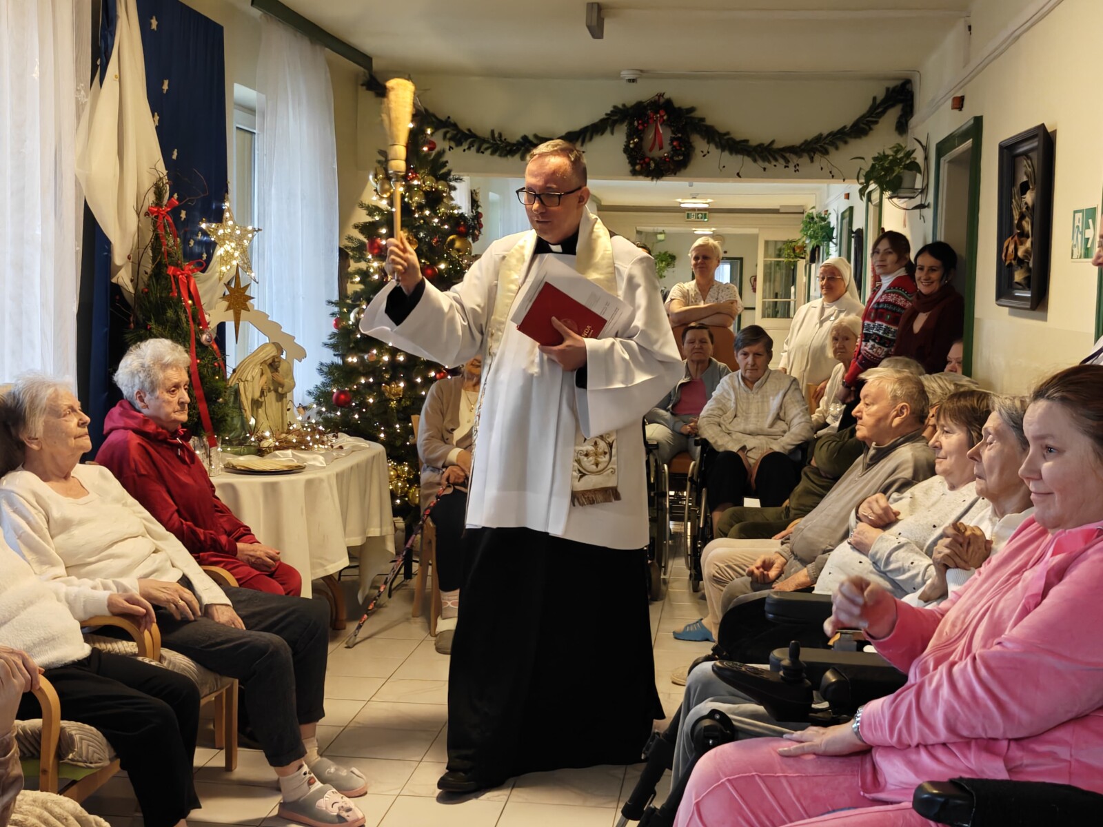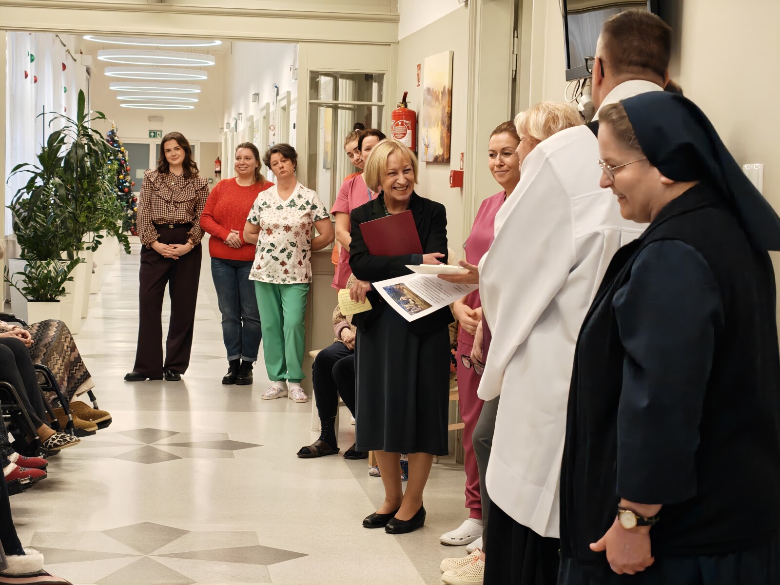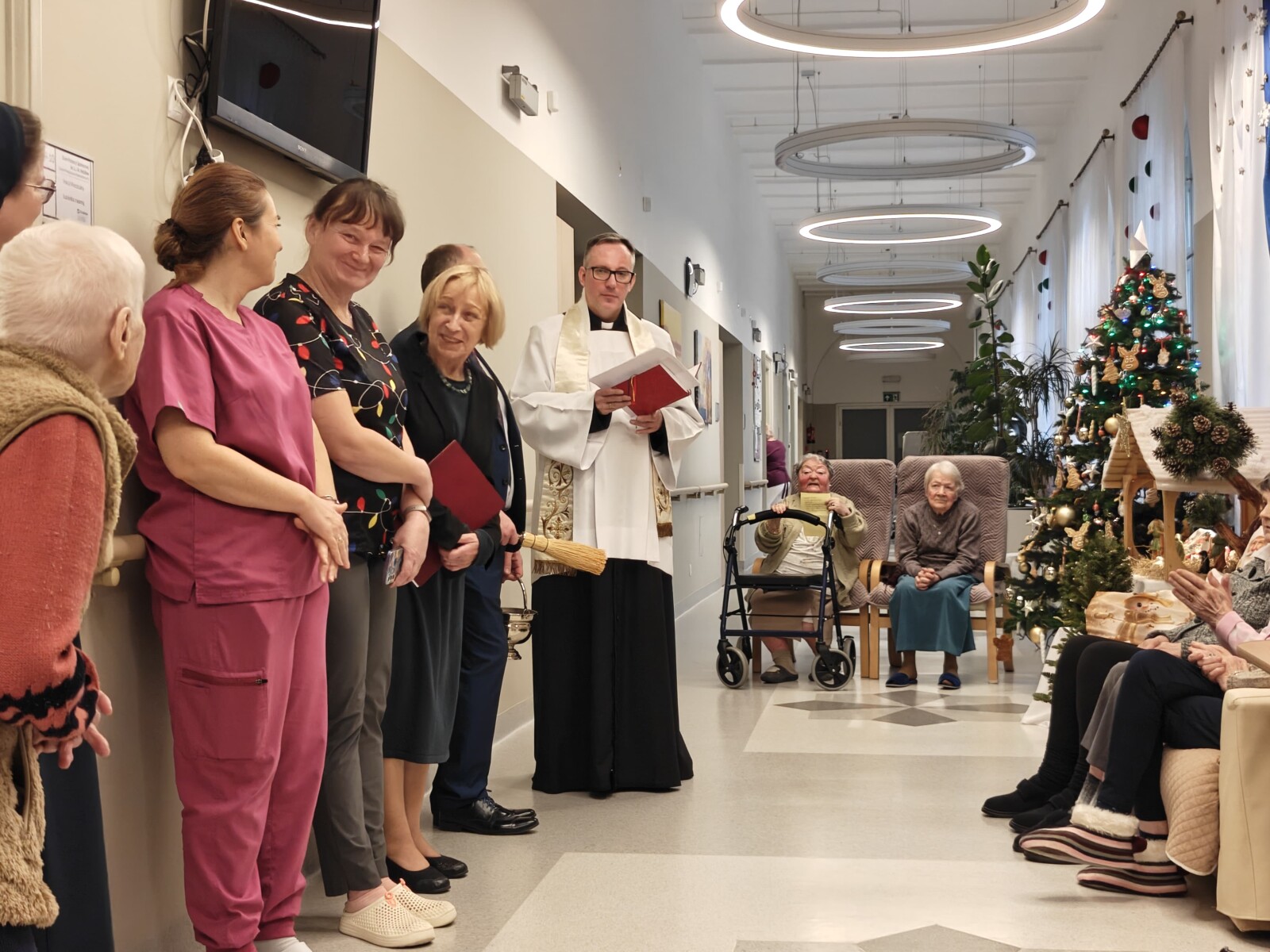 W poniedziałkowe przedpołudnie, 22 grudnia, na dwa dni przed Wigilią Świąt Bożego Narodzenia, dyrektor Domu – Pani Józefa Grodecka oraz zastępca dyrektora - Pan Marcin Ogórek, wraz ze współpracownikami i kapelanem odwiedzili mieszkańców wszystkich Zespołów Pielęgnacyjno - Opiekuńczych.