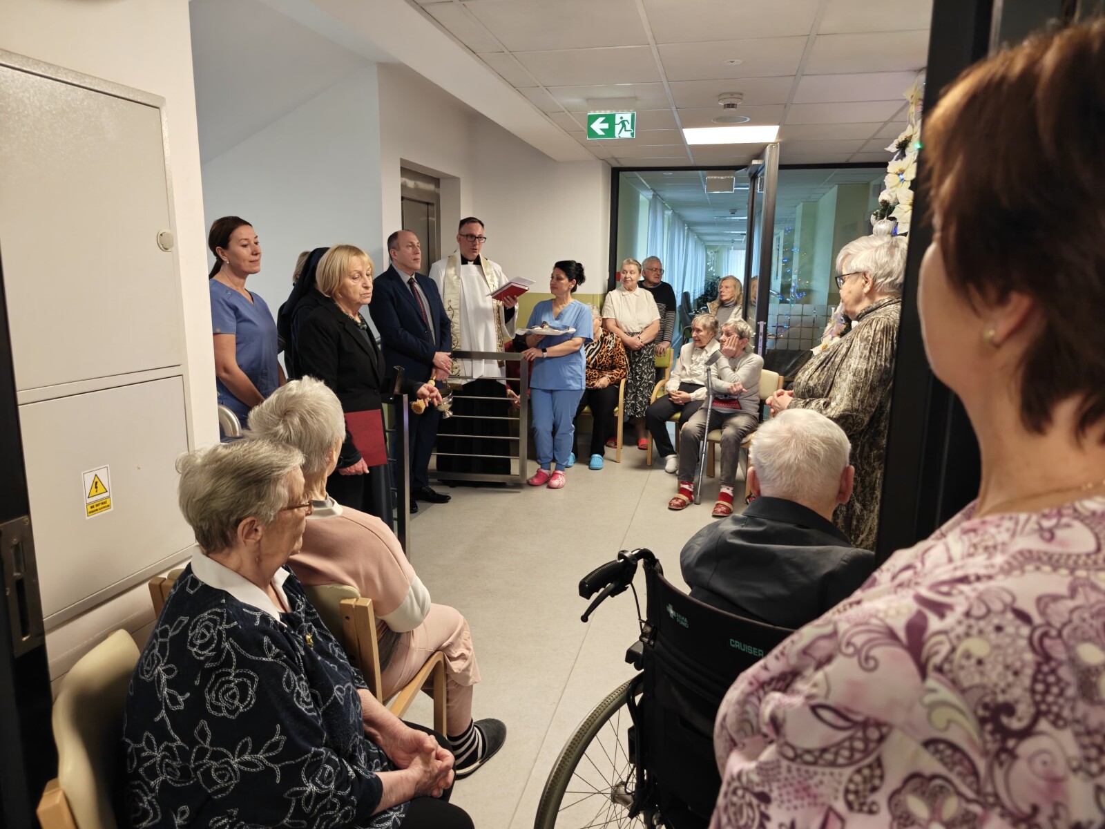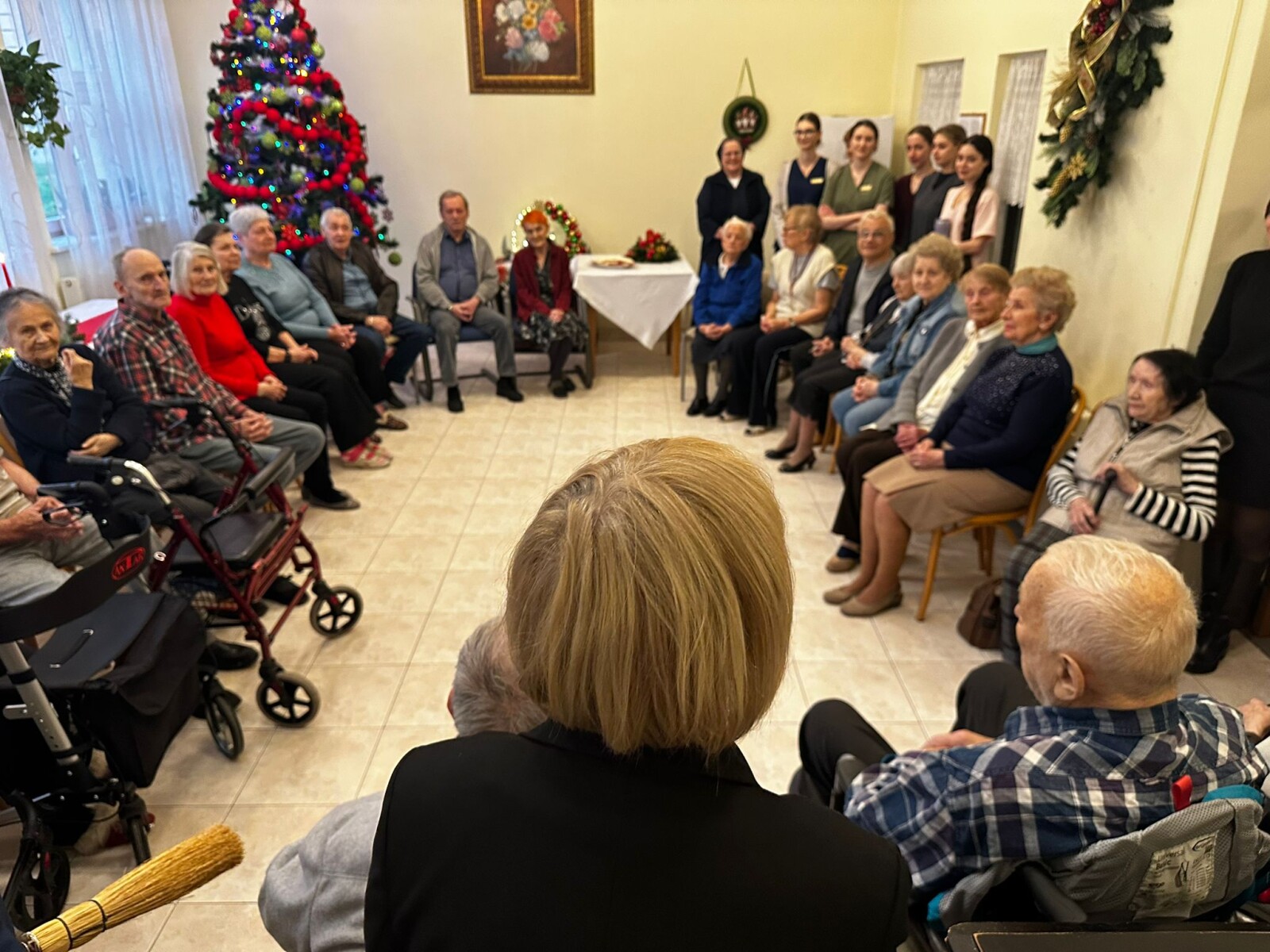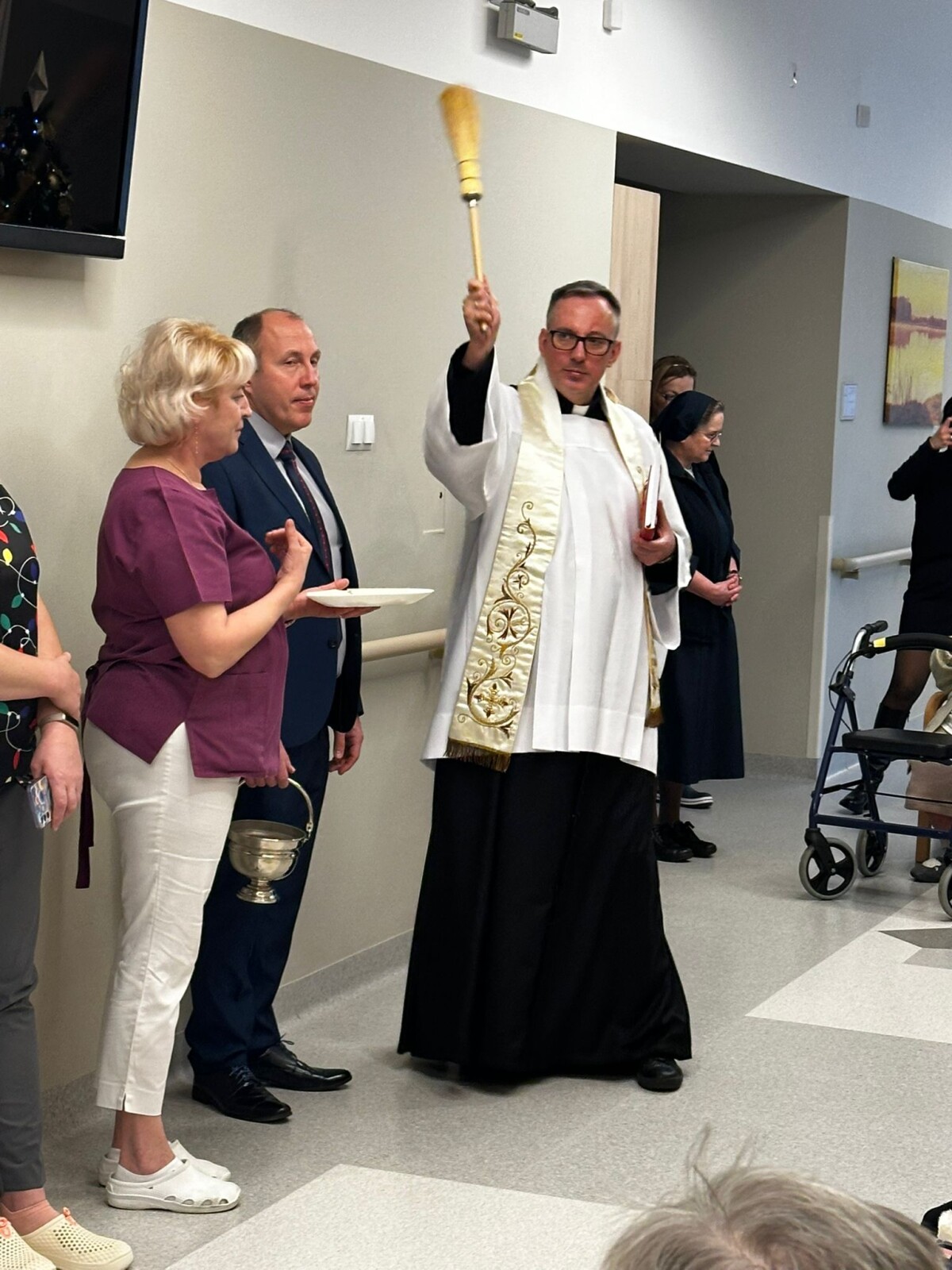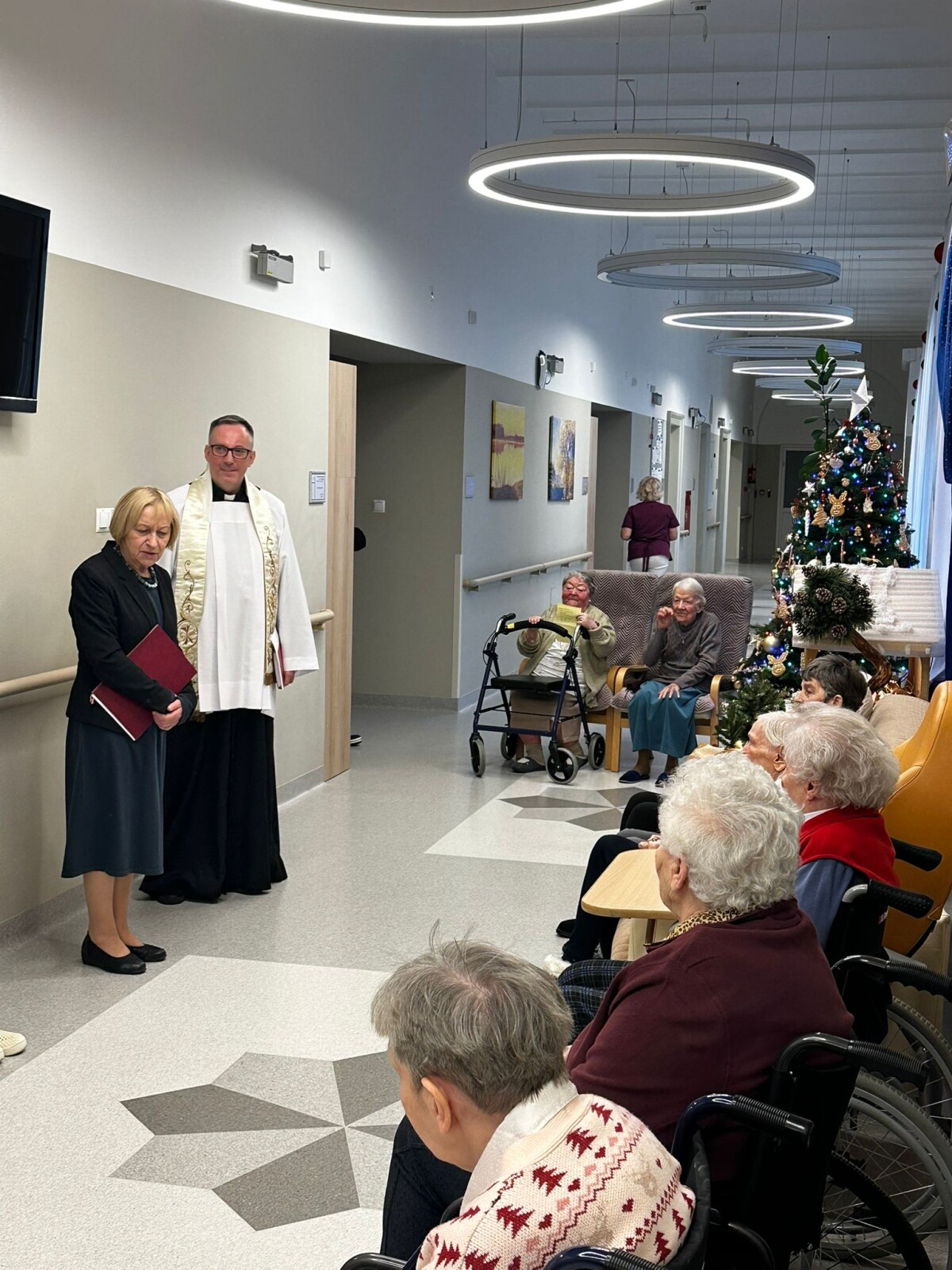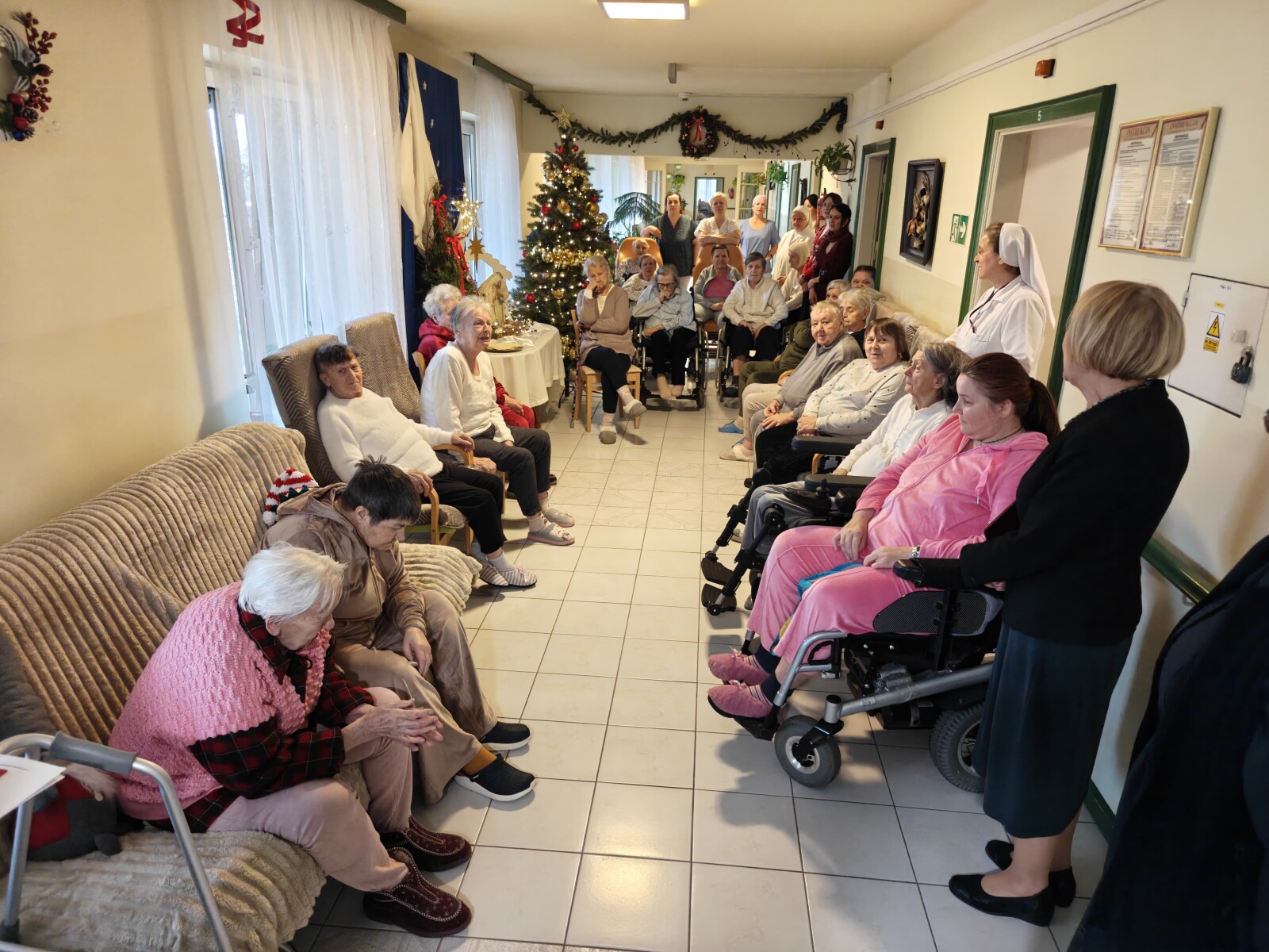 W poniedziałkowe przedpołudnie, 22 grudnia, na dwa dni przed Wigilią Świąt Bożego Narodzenia, dyrektor Domu – Pani Józefa Grodecka oraz zastępca dyrektora - Pan Marcin Ogórek, wraz ze współpracownikami i kapelanem odwiedzili mieszkańców wszystkich Zespołów Pielęgnacyjno - Opiekuńczych.