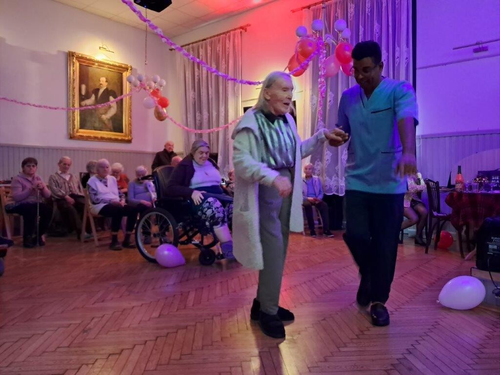Również w naszym Domu kultywujemy ten zwyczaj, dbając o to, aby mieszkańcy mogli wspólnie i uroczyście zakończyć mijający rok. W programie naszego spotkania znalazła się dobra muzyka, wspólne tańce, wróżby na Nowy Rok 2026 oraz chwila refleksji i wspomnień związanych z kończącym się rokiem 2025. Radosna atmosfera, uśmiechy i wzajemna życzliwość towarzyszyły uczestnikom przez cały czas trwania wydarzenia. Nie zabrakło również słodkiego poczęstunku. Mieszkańcy mieli okazję skosztować pysznego ciasta przygotowanego przez kuchnię naszego Domu, które było miłym dopełnieniem sylwestrowego spotkania.