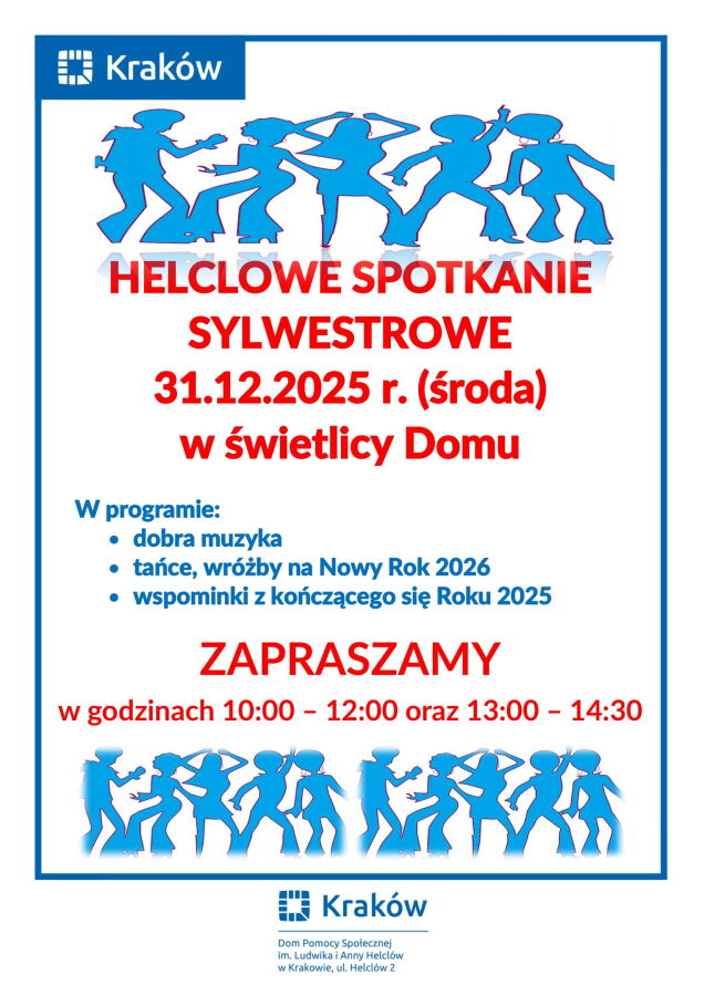 W dniu 31 grudnia 2025 roku w świetlicy Domu odbyło się Helclowe Spotkanie Sylwestrowe. Wydarzenie zgromadziło licznie mieszkańców naszego Domu.