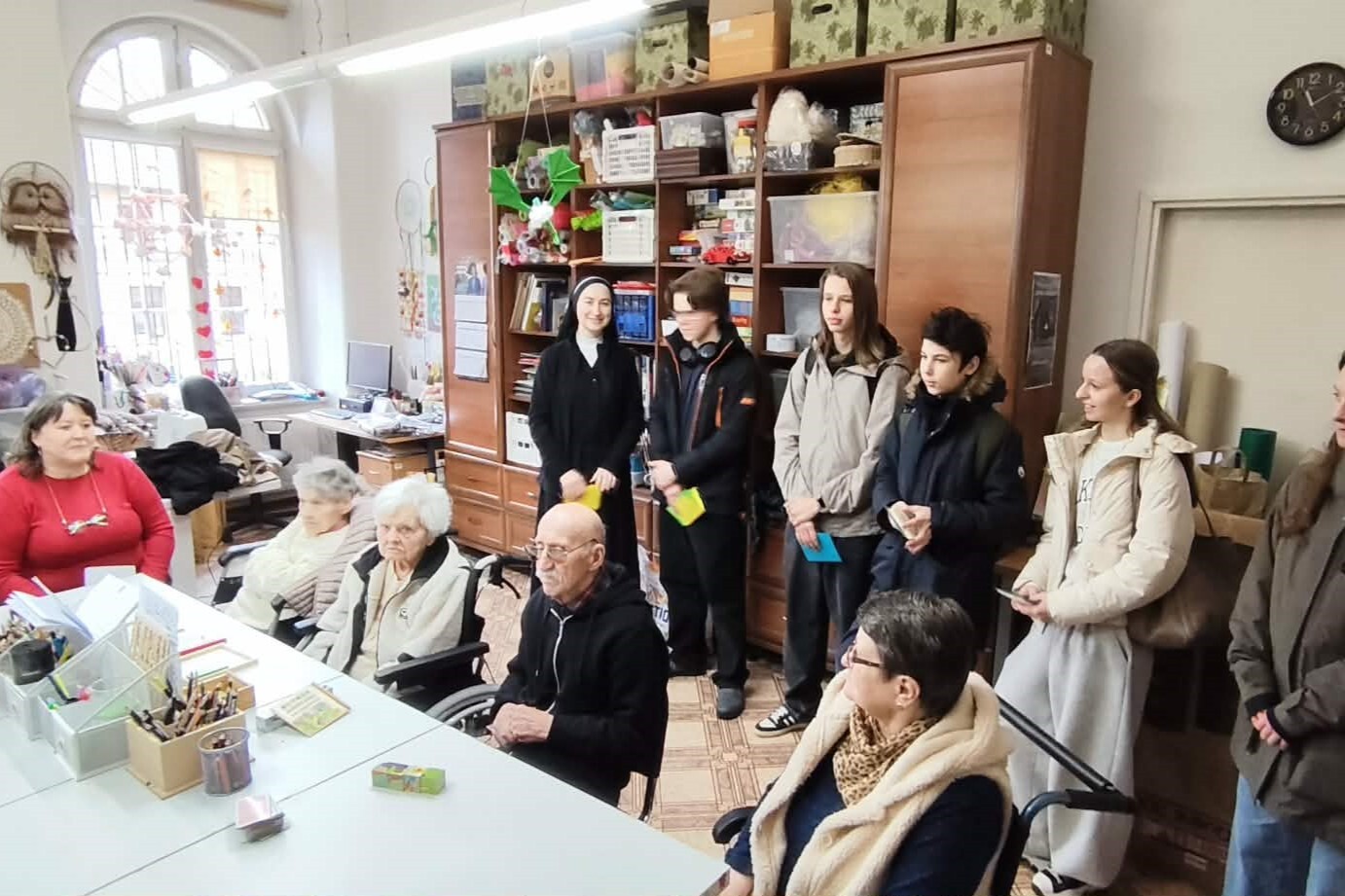 Po zakończeniu inscenizacji odwiedzili nas przedstawiciele uczniów ze Szkoły Sióstr Prezentek w Krakowie, którzy złożyli naszym mieszkańcom serdeczne życzenia świąteczne, wnosząc w mury naszej placówki wiele radości i ciepła.
