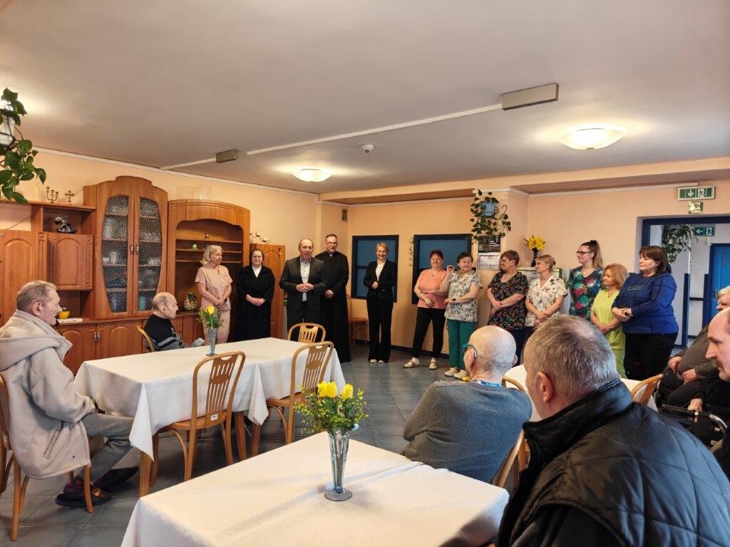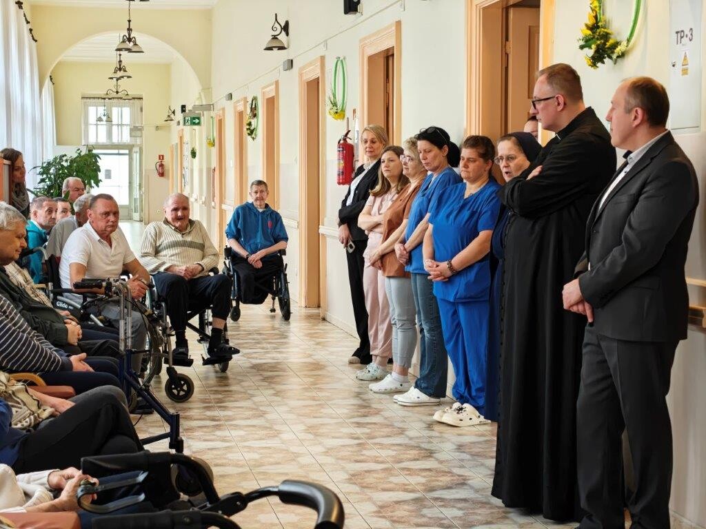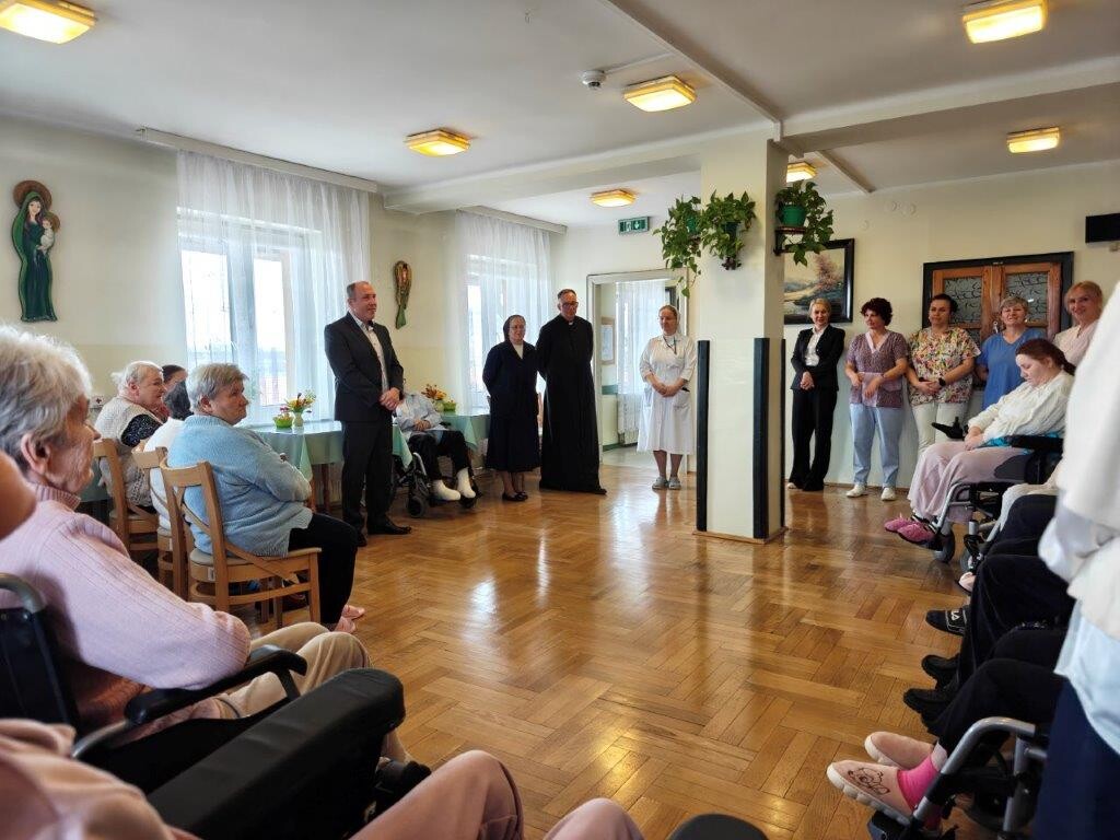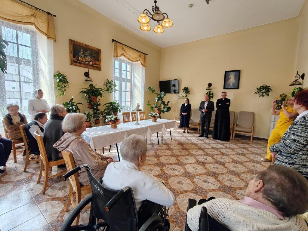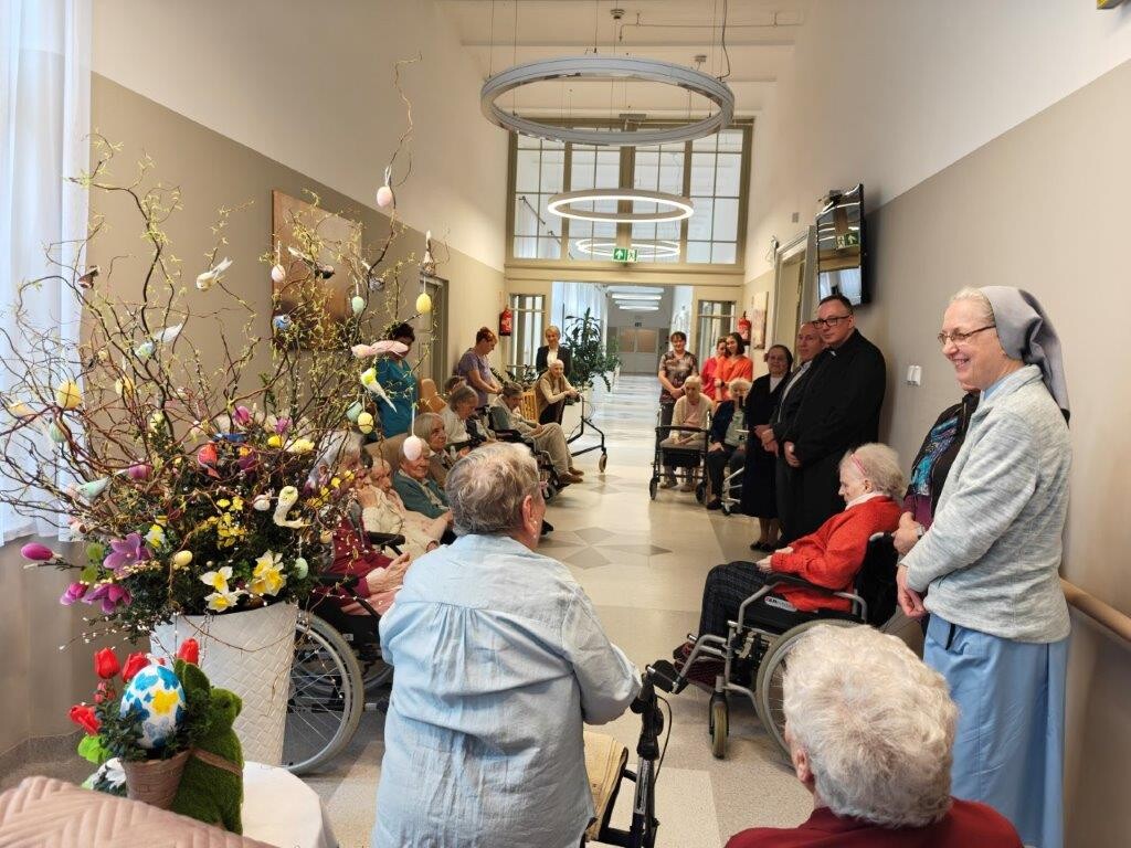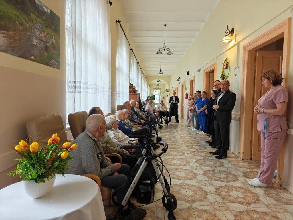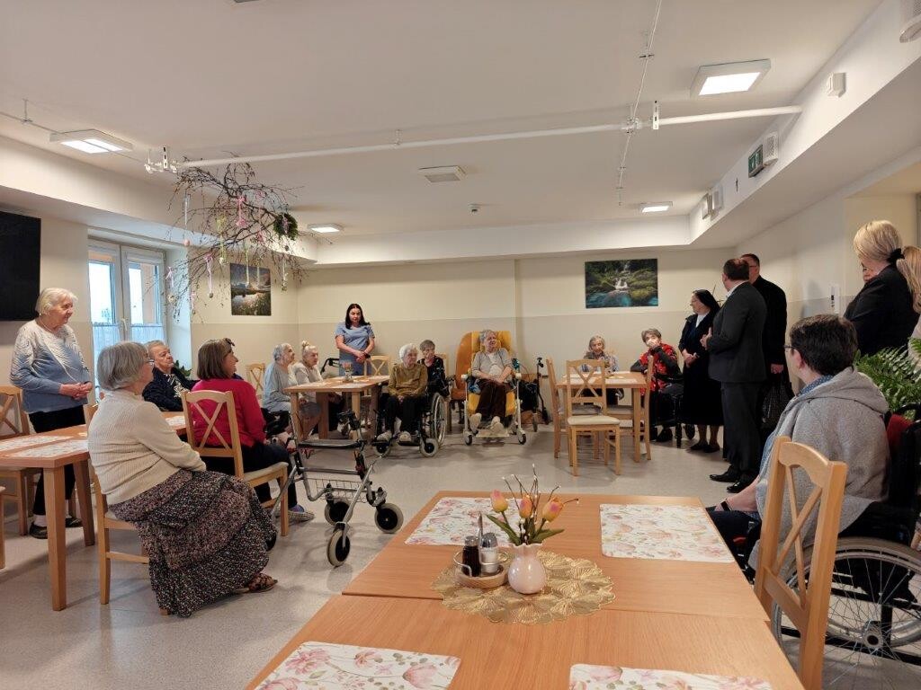 2 kwietnia 2026 roku, w godzinach przedpołudniowych, odbyły się przedświąteczne spotkania z mieszkańcami i pracownikami poszczególnych zespołów pielęgnacyjno-opiekuńczych. W wydarzeniu uczestniczyli przedstawiciele kadry zarządzającej na czele z Panem p.o. Dyrektorem Marcinem Ogórkiem oraz siostrą Lucyną Rybarską – kierownikiem działu pielęgnacyjno - opiekuńczego.