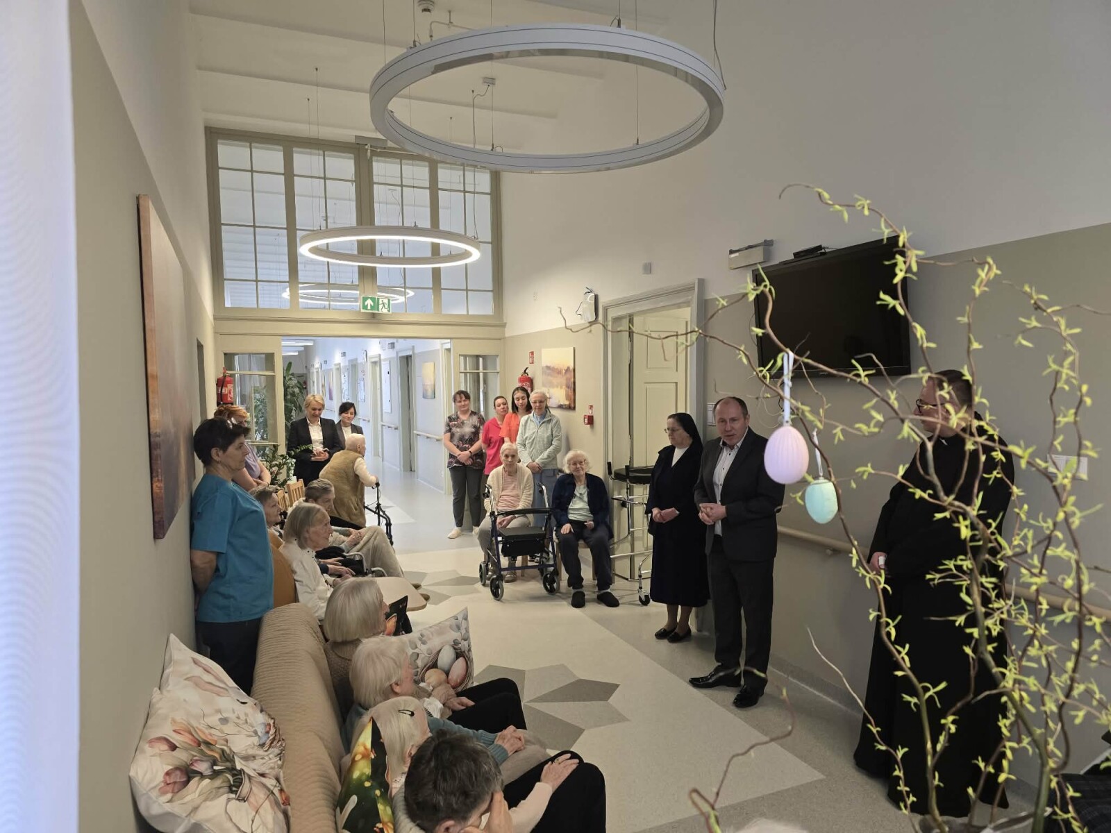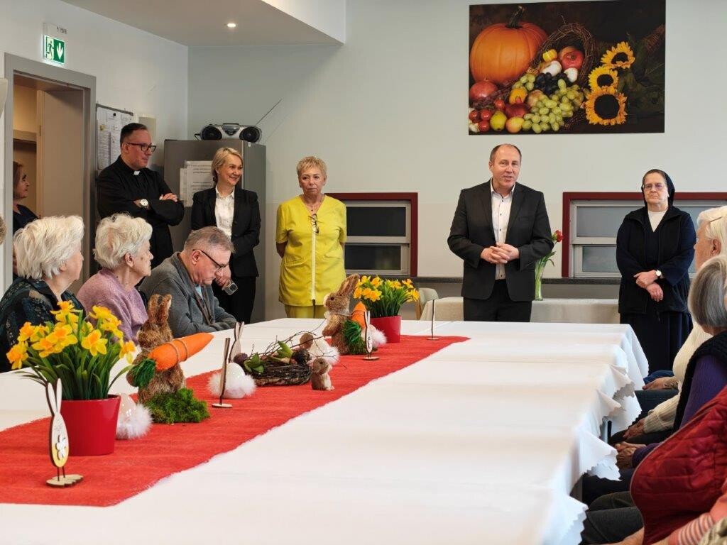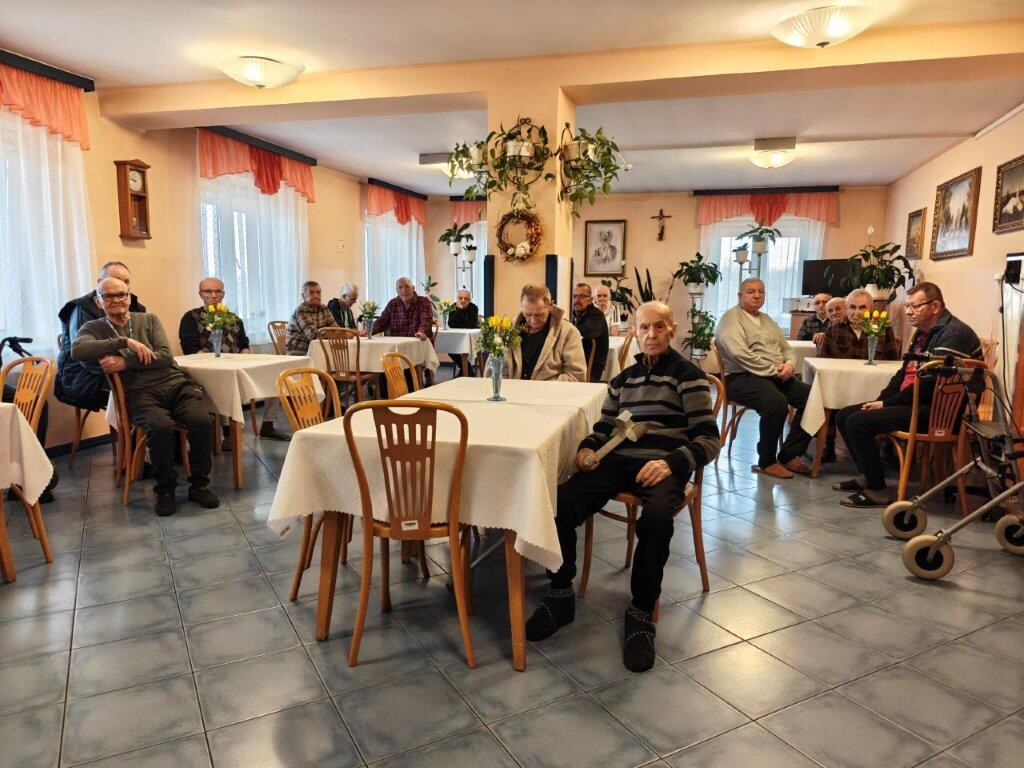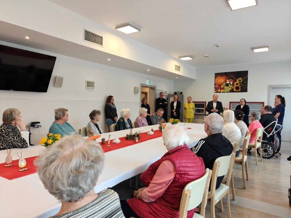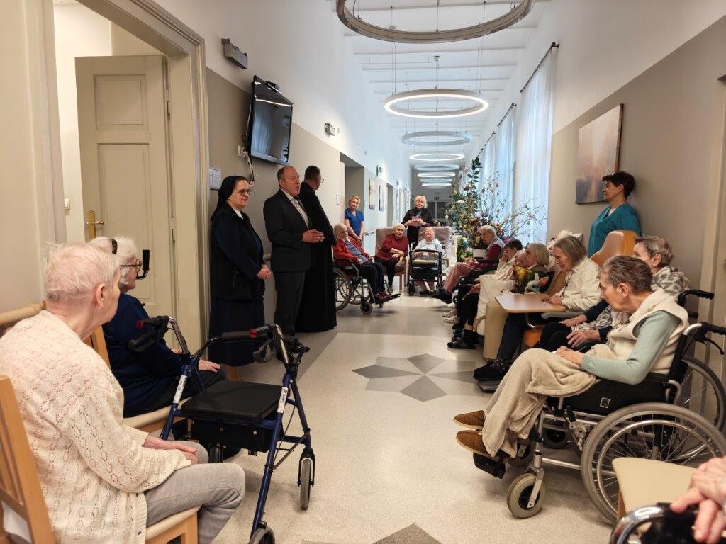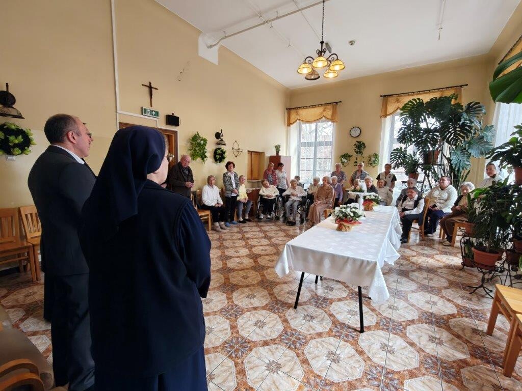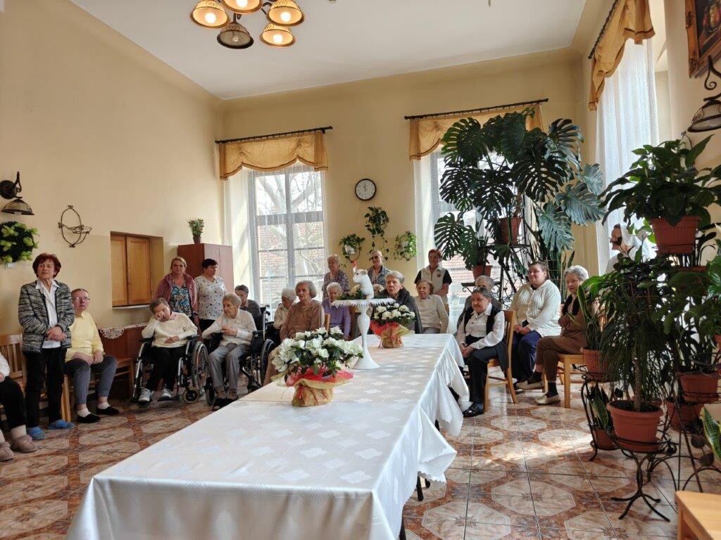 2 kwietnia 2026 roku, w godzinach przedpołudniowych, odbyły się przedświąteczne spotkania z mieszkańcami i pracownikami poszczególnych zespołów pielęgnacyjno-opiekuńczych. W wydarzeniu uczestniczyli przedstawiciele kadry zarządzającej na czele z Panem p.o. Dyrektorem Marcinem Ogórkiem oraz siostrą Lucyną Rybarską – kierownikiem działu pielęgnacyjno - opiekuńczego.