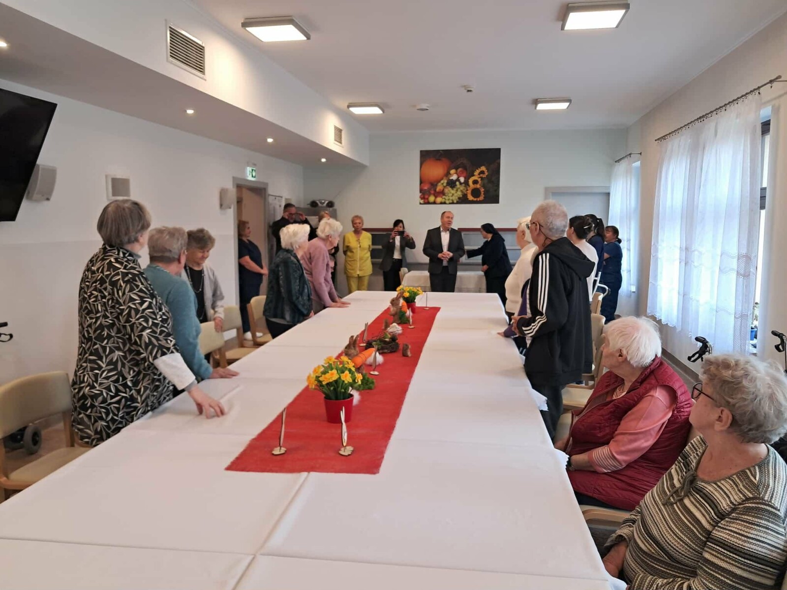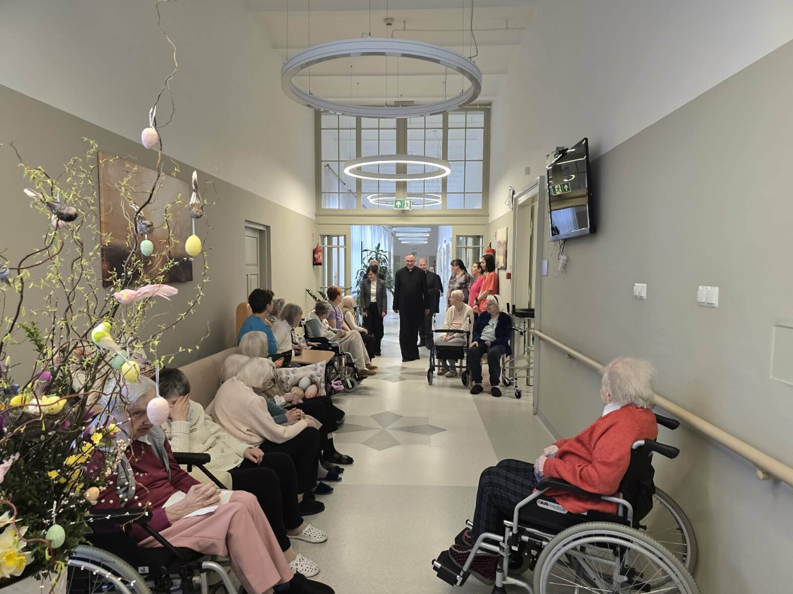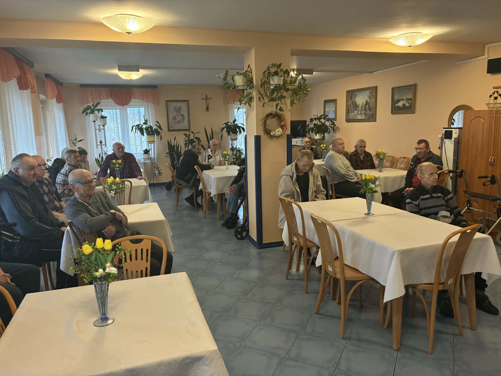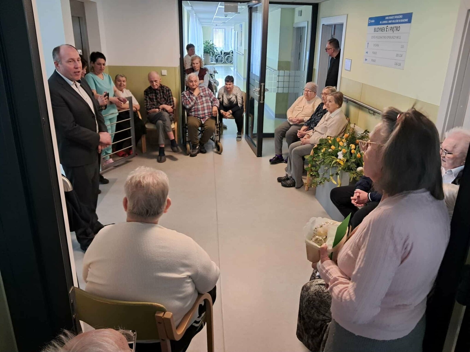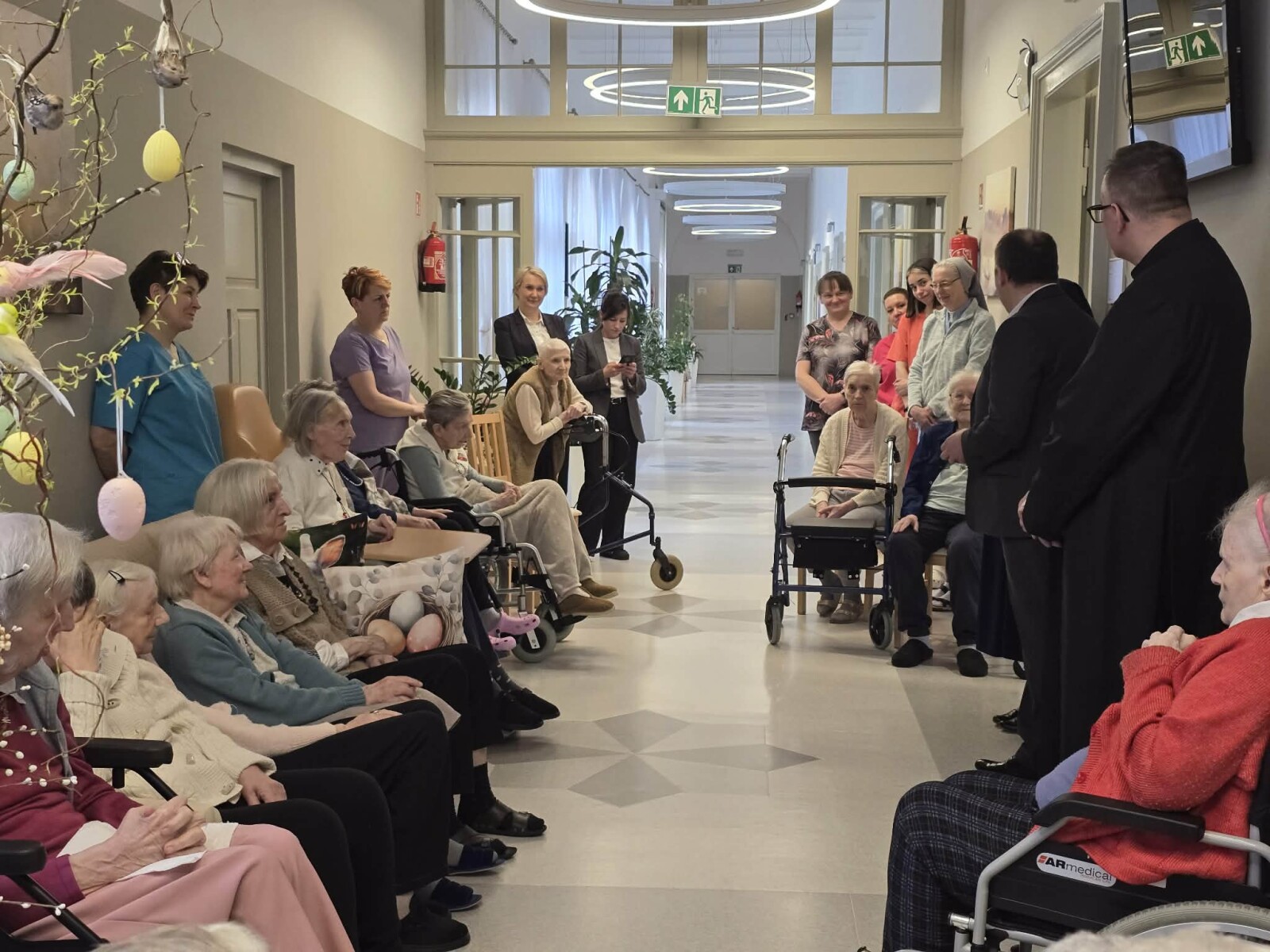 2 kwietnia 2026 roku, w godzinach przedpołudniowych, odbyły się przedświąteczne spotkania z mieszkańcami i pracownikami poszczególnych zespołów pielęgnacyjno-opiekuńczych. W wydarzeniu uczestniczyli przedstawiciele kadry zarządzającej na czele z Panem p.o. Dyrektorem Marcinem Ogórkiem oraz siostrą Lucyną Rybarską – kierownikiem działu pielęgnacyjno - opiekuńczego.