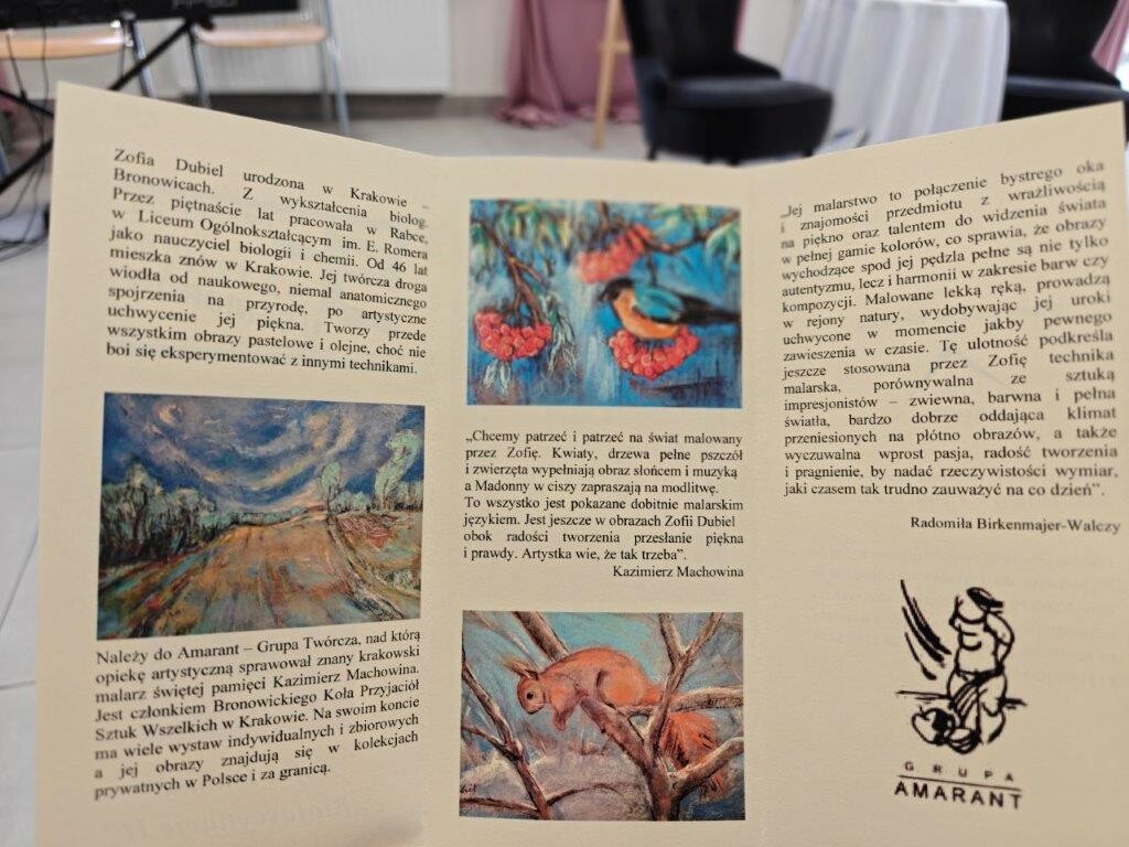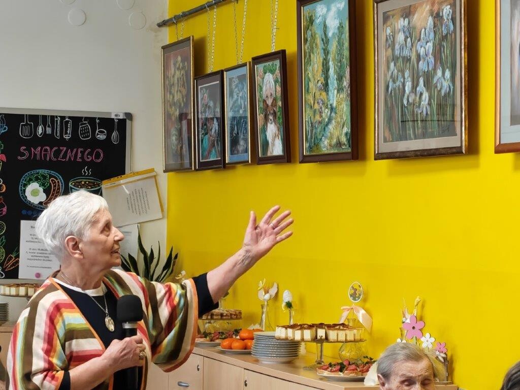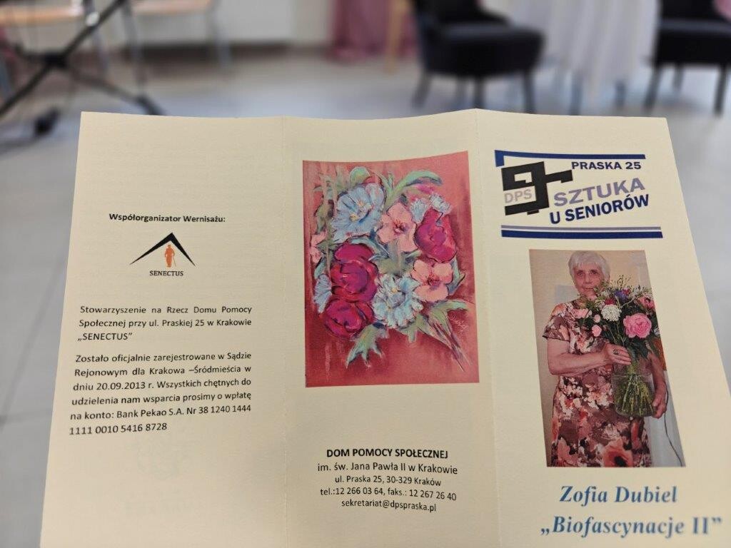 15 kwietnia 2026 roku mieszkańcy naszego Domu wzięli udział w ciekawym wydarzeniu kulturalnym – wernisażu prac malarskich Zofii Dubiel, który odbył się w Domu Pomocy Społecznej im. Jana Pawła II przy ul. Praskiej 25 w Krakowie.
