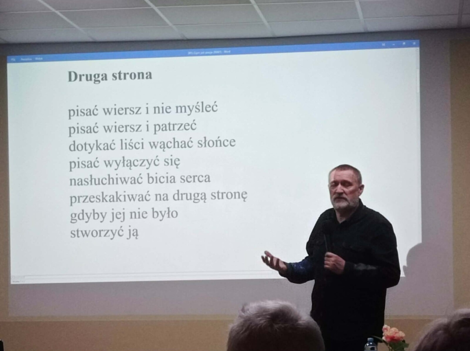 Podczas spotkania była okazja do zastanowienia się nad istotą poezji poprzez zapoznanie się z twórczością m.in. Juliana Kornhausera, Agnieszki Kuciak, Ewy Lipskiej oraz Jiříego Kolářa. Prezentowane wiersze, wzbogacone oprawą muzyczną w postaci recitalu poezji śpiewanej w wykonaniu Magdaleny Harasimowicz-Moksy, ukazały wyjątkowy charakter utworów – jako źródła spokoju, ukojenia oraz odzwierciedlenie ludzkich emocji.
